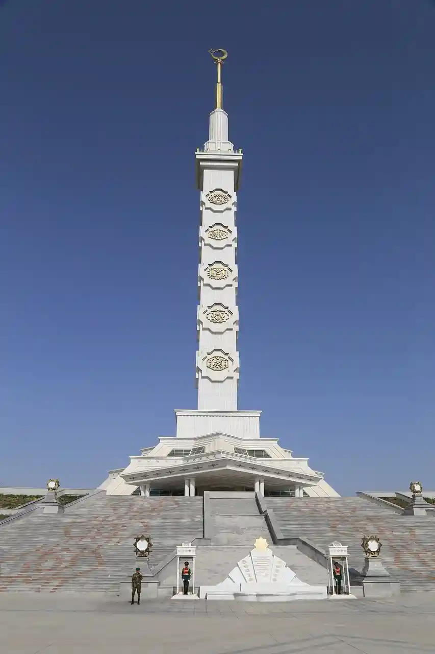 Monument to the Turkmenistan Constitution () is a monument located in Ashgabat, Turkmenistan. Its height of 185 meters makes it the second-tallest building in Turkmenistan. The monument is decorated with marble. Built to honor the 20th anniversary of the Constitution of Turkmenistan, it was constructed between 2008 and 2011 on the Archabil avenue, by the Turkish construction company Polimeks. Inside the complex is a museum, a conference room, a library, a gift shop and a cafeteria. Read more on Wikipedia