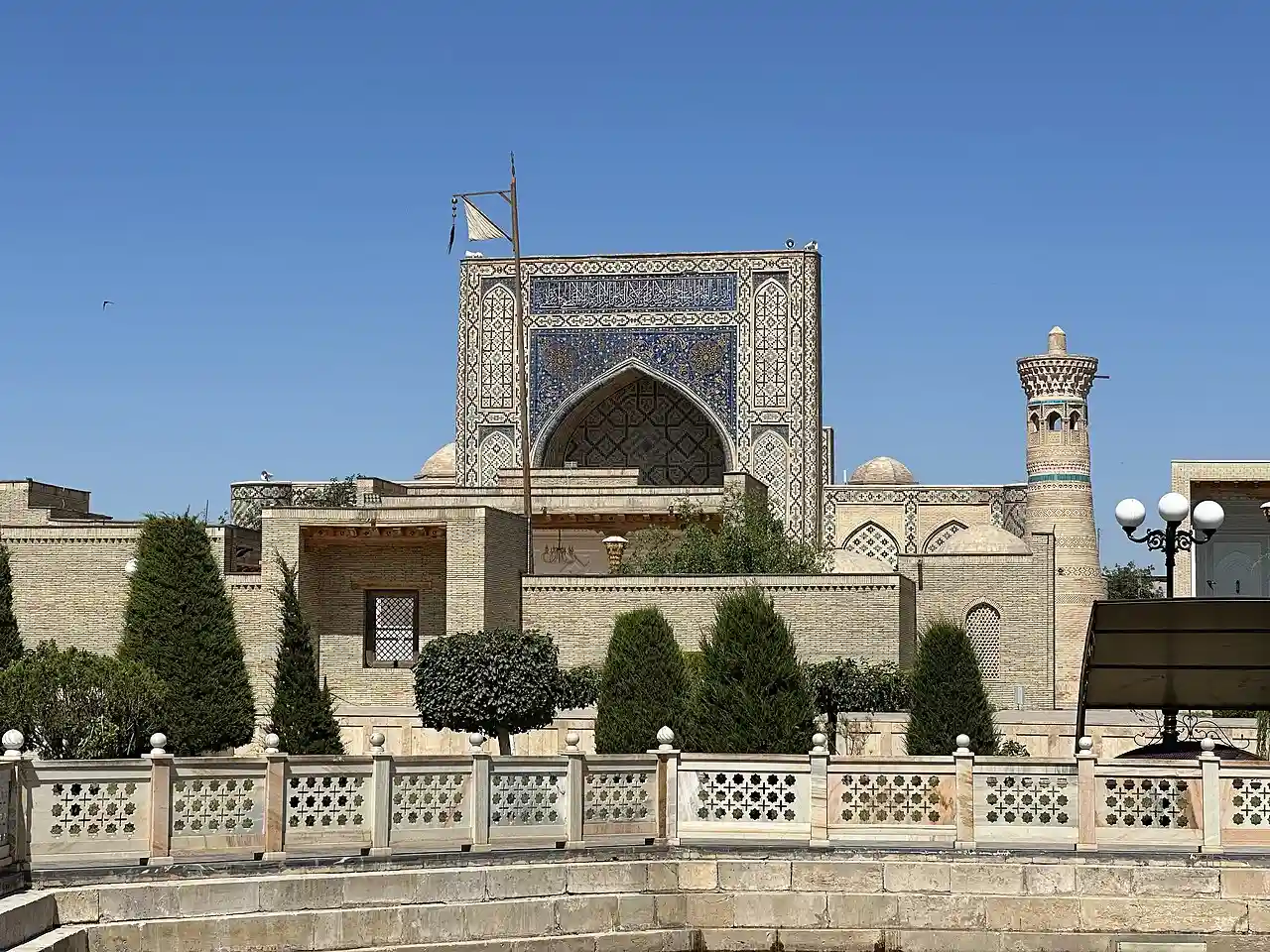 Khoja Abdulkhalik Gijduvani Complex is an architectural monument (XII-XV centuries) located in the city of Gijduvan, Bukhara Region. The complex is located 50 km from the city of Bukhara and was built by Abdukholiq ibn Abdujalil Gijduvani, the founder of the Khojagan sect. The complex consists of the mausoleum of Khoja Abdulkhaliq Gijduvani, the Ulugbek Madrasah, a mosque and a pool. Khoja Abdulkhaliq Gijduvani is the first representative of seven pirs in Bukhara. He became known as Khojai Jahan and founded the school of Sufism. In 1433, Timurid Mirza Ulugbek built a madrasa in front of the shrine of Khoja Abdulkhaliq Gijduvani. In 2003, the 900th anniversary of Khoja Abdulkhaliq Gijduvani was widely celebrated. The Ulugbek madrasah in the complex was distinguished by its appearance. A mosque was built in this complex during the reign of Shaibani Ubaydullah Khan of Bukhara (1539–1550). In 1583, the madrasa and mosque were renovated during the reign of Bukhara Khan Abdullah Khan II (1583–1598). Verses 1-7 of Surah Alaq were mentioned on the facade of the Mirzo Ulugbek madrasah. These notes were written in suls script. However, most of them have collapsed. In 1946, certain part of the Mirzo Ulugbek madrasa records were read and accordingly it was restored. The tombstone of Abdukholiq Gijduvani was made of stone and the eleventh verse of Surah "Mujodala" from the Quran was written on the sides. On the short sides of the tombstone, an epitaph (inscription devoted to that person) was written. The mosque in the complex of Khoja Abdulkhaliq Gijduvani was rebuilt in 2003. Nowadays, all the conditions for pilgrims have been created in the complex of Khoja Abdulkhaliq Gijduvani. Read more on Wikipedia