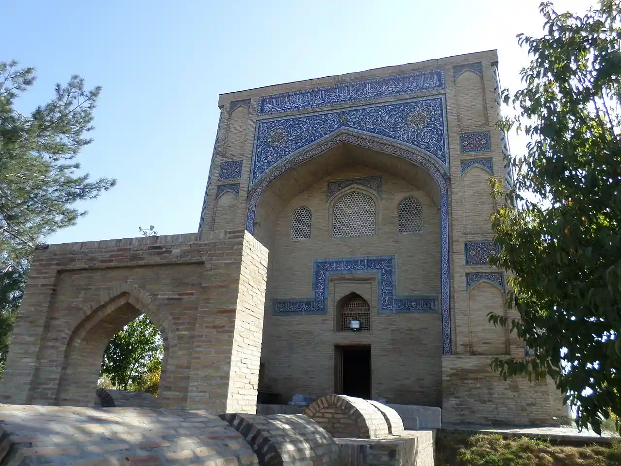 Qaffol Shoshi mausoleum (Uzbek: Qaffol Shoshiy maqbarasi) is a mausoleum in Tashkent, Uzbekistan, built in honor of Imam Abu Bakr Muhammad ibn Ali ibn Ismail al-Kaffal ash-Shashi.National encyclopedia of Uzbekistan. - Tashkent: "National Encyclopedia of Uzbekistan" State Scientific Publishing House, 2004, volume 9 The original tomb did not survive in its initial form. In its current state, the mausoleum was constructed in 1542 by the royal architect of that time, Gulyam Husayn. It is an asymmetrical domed portal mausoleum, known as a khanqah. Khanqahs were designed to provide pilgrims shelter in residential places called “khujrahs”. Mausoleum complexes often included a mosque and a kitchen. To the south of the main building in a small courtyard, there are later burial places (saganas). Read more on Wikipedia