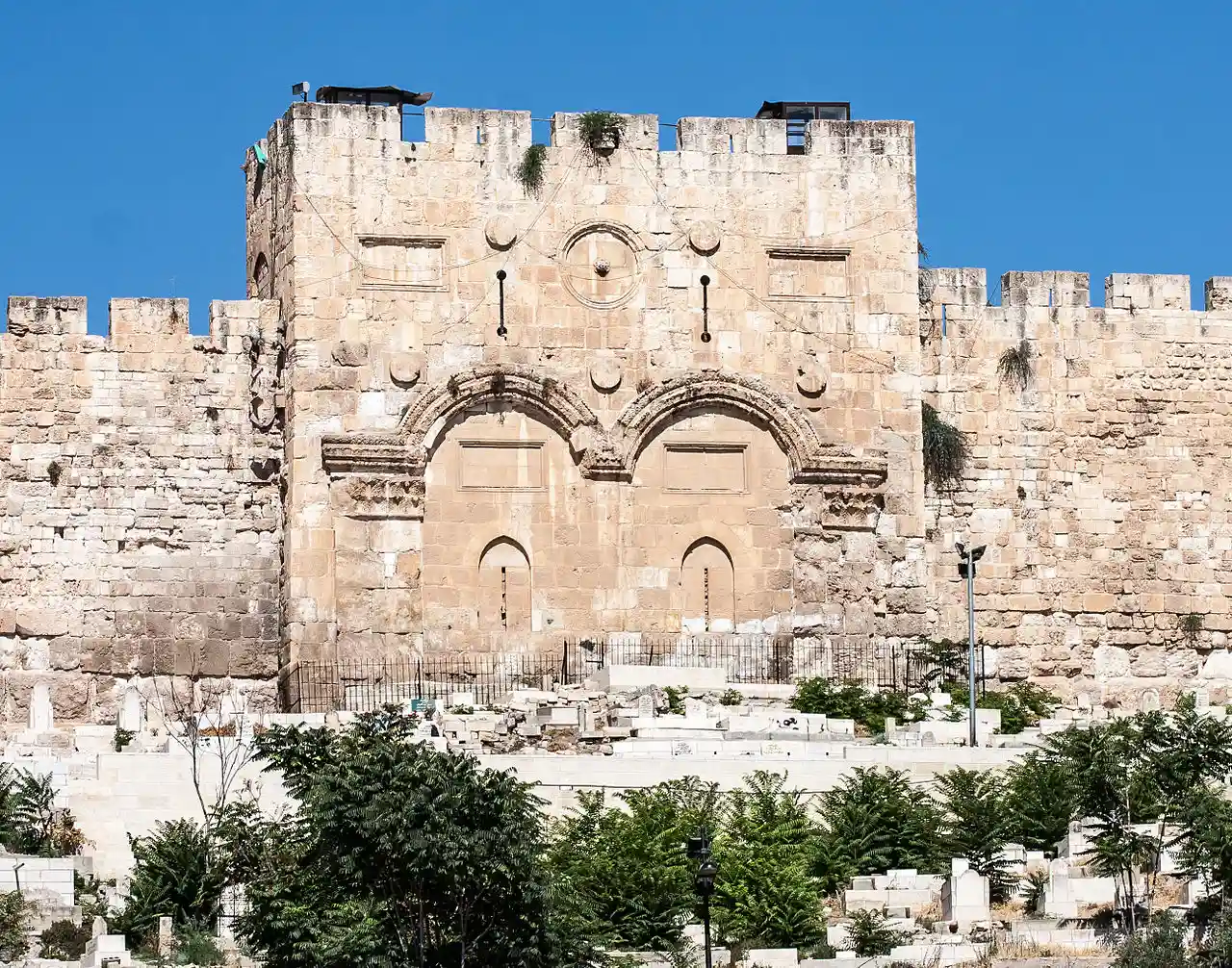 The Golden Gate or Gate of Mercy (; ) is the only eastern gate of the Temple Mount, and one of only two Gates of the Old City of Jerusalem that used to offer access into the city from the East side. Read more on Wikipedia