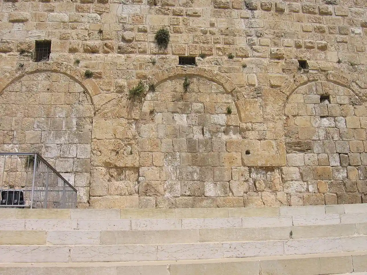 The Huldah Gates (, Sha'arei Hulda) were one of the Gates of the Old City of Jerusalem leading into the Jerusalem Temple compound in the Hasmonean period and were named as such in the Mishnah. The term is currently being used for the remains of two later sets of gates, the Triple Gate and the Double Gate, known together as the Huldah Gates, built as part of the much extended Herodian Temple Mount, situated in Jerusalem's Old City. Both sets of gates were set into the Southern Wall of the Temple compound and gave access to the Temple Mount esplanade by means of underground vaulted ramps. Both were walled up in the Middle Ages. Read more on Wikipedia