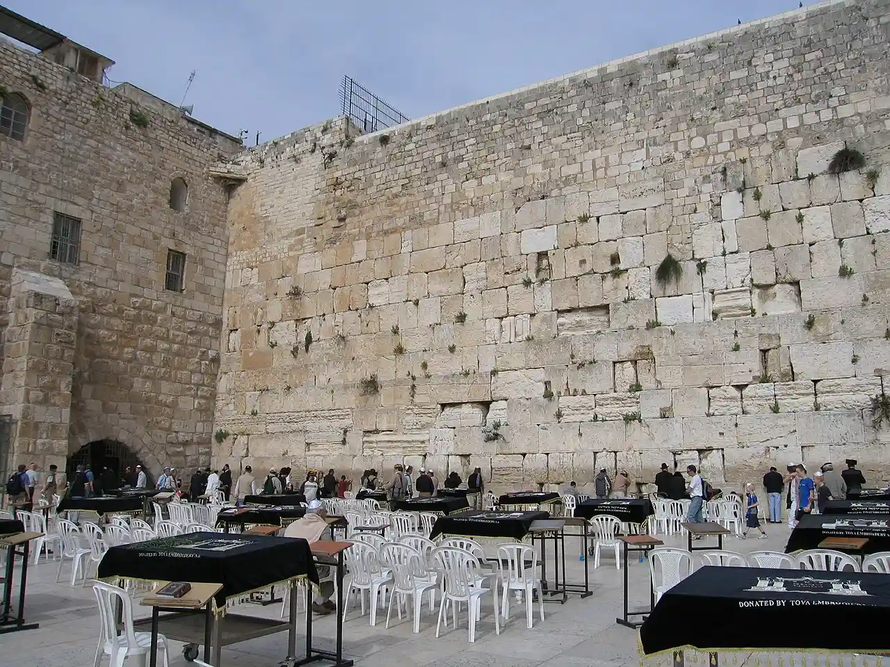 Wilson's Arch () is the modern name for an ancient stone arch in Jerusalem, the first in a row of arches that supported a large bridge connecting the Herodian Temple Mount with the Upper City on the opposite Western Hill. The Arch springs from the Western Wall and is still visible underneath later buildings set against the Wall. The name Wilson's Arch is also used to denote the hall that it partially covers, which is currently used as a synagogue. This hall opens towards the Western Wall Plaza at the Plaza's northeast corner, so that it appears on the left of the prayer section of the Western Wall to visitors facing the Wall. Read more on Wikipedia