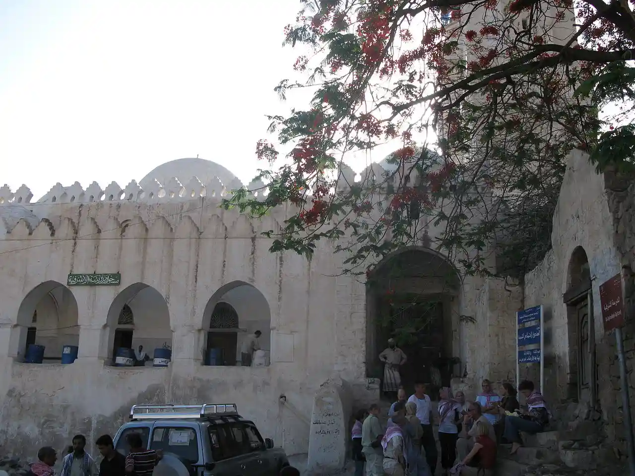 Madrasa and Mosque of Al-Ashrafiya or Al-Ashrafiya Mosque () is a historical madrasa-mosque located in the old city of Taiz, Yemen at the foot of Mount Sabr in the southwestern part of the city. It is arguably the most notable preserved artifact of Taiz, given its distinct and beautiful design. It is considered to be one of the most important centers in the Islamic history of Yemen along with its complement, the Mudhaffar Mosque. It was supposedly built in two stages: (1) by Sultan Al-Ashraf Umar II (1295-6) or 800 Hijri, (2) by Sultan Al-Ashraf Isma'il I (1377-1400) and opened in 1382 or 803 Hijri. This compound can be found in the neighborhood of Ashrafiya, surrounded by a number of other locations and overlooks the Cairo Citadel. The mosque accommodates approximately 120 to 800 worshippers. Read more on Wikipedia