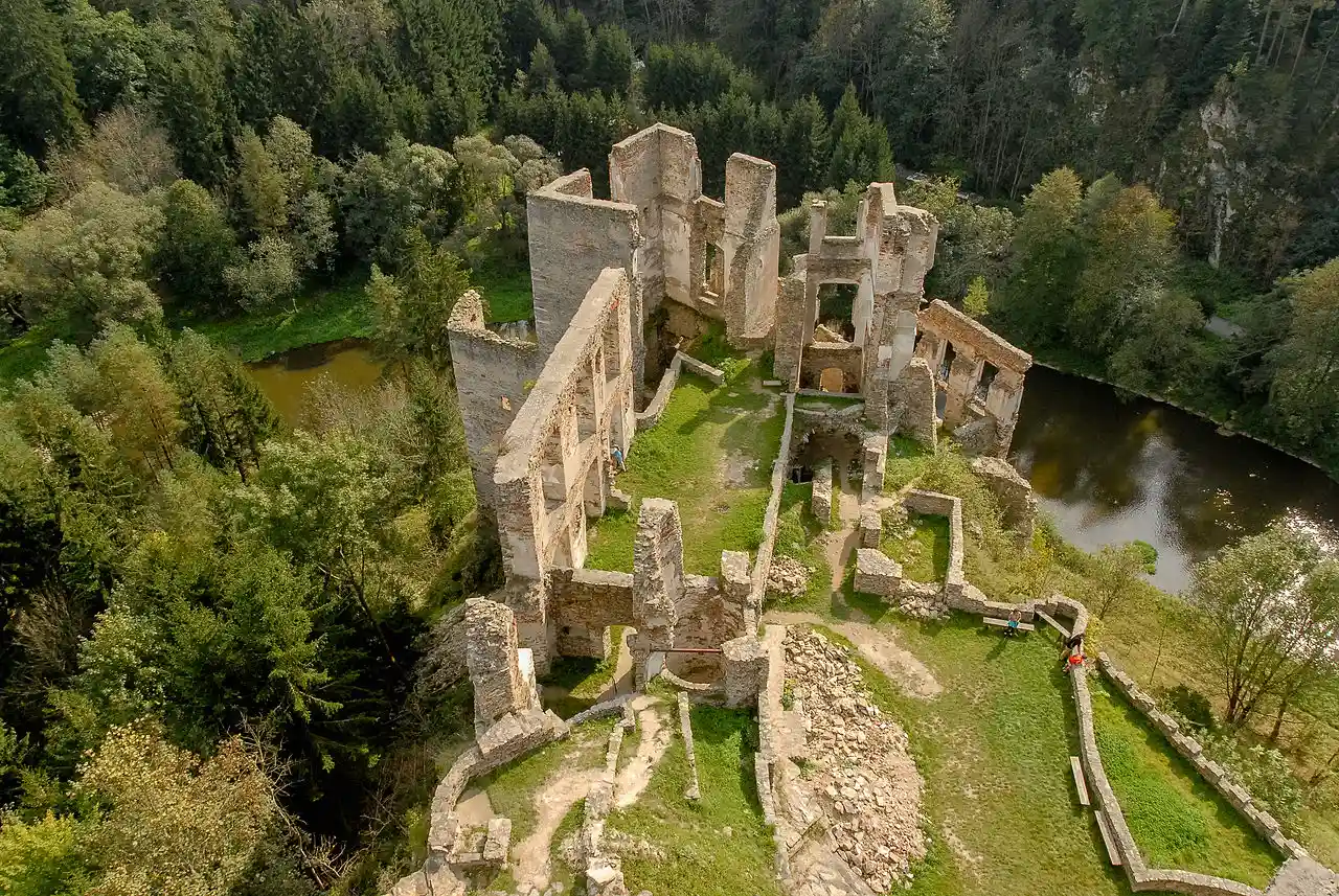 Kollmitz Castle (German: Burgruine Kollmitz, lit. “castle ruins of Kollmitz”) is a ruined castle east of Raabs an der Thaya in Lower Austria, Austria. The Castle was first mentioned in the 13th century and the construction of its main tower was completed in 1319. Read more on Wikipedia
