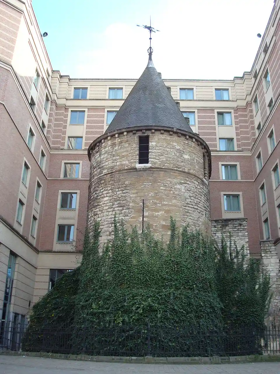 The Black Tower (, ) is a medieval tower in central Brussels, Belgium. It is one of the best preserved remains of the first fortifications of Brussels, built at the start of the 13th century. It is notable for being a single medieval tower surrounded by modern-day buildings. This odd sight has made it a popular tourist destination. Read more on Wikipedia
