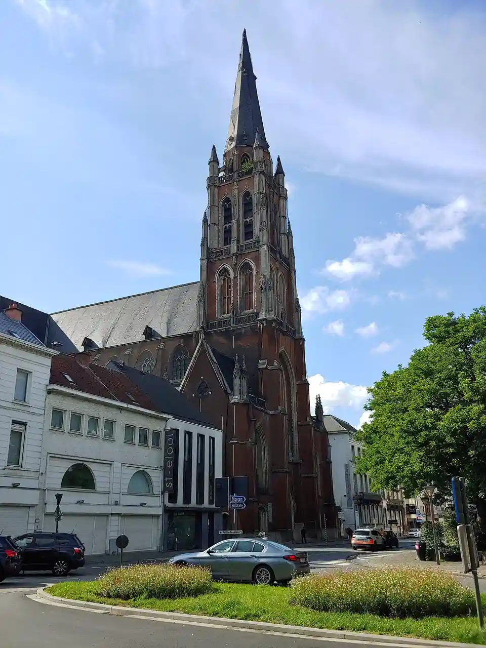 The Saint-Joseph Church (Dutch: Sint-Jozefkerk) is a neo-Gothic church with basilical construction, located in the Belgian city of Aalst (province of East Flanders). Work on the church started in 1868 and was completed in 1908. The future of the church is currently uncertain due to serious stability problems however in 2023 it was decided to restore the building. It is the tallest building in the city of Aalst (91 m). The restoration will cost 36 million euros and will get subsidisation from the Flemish government. Read more on Wikipedia
