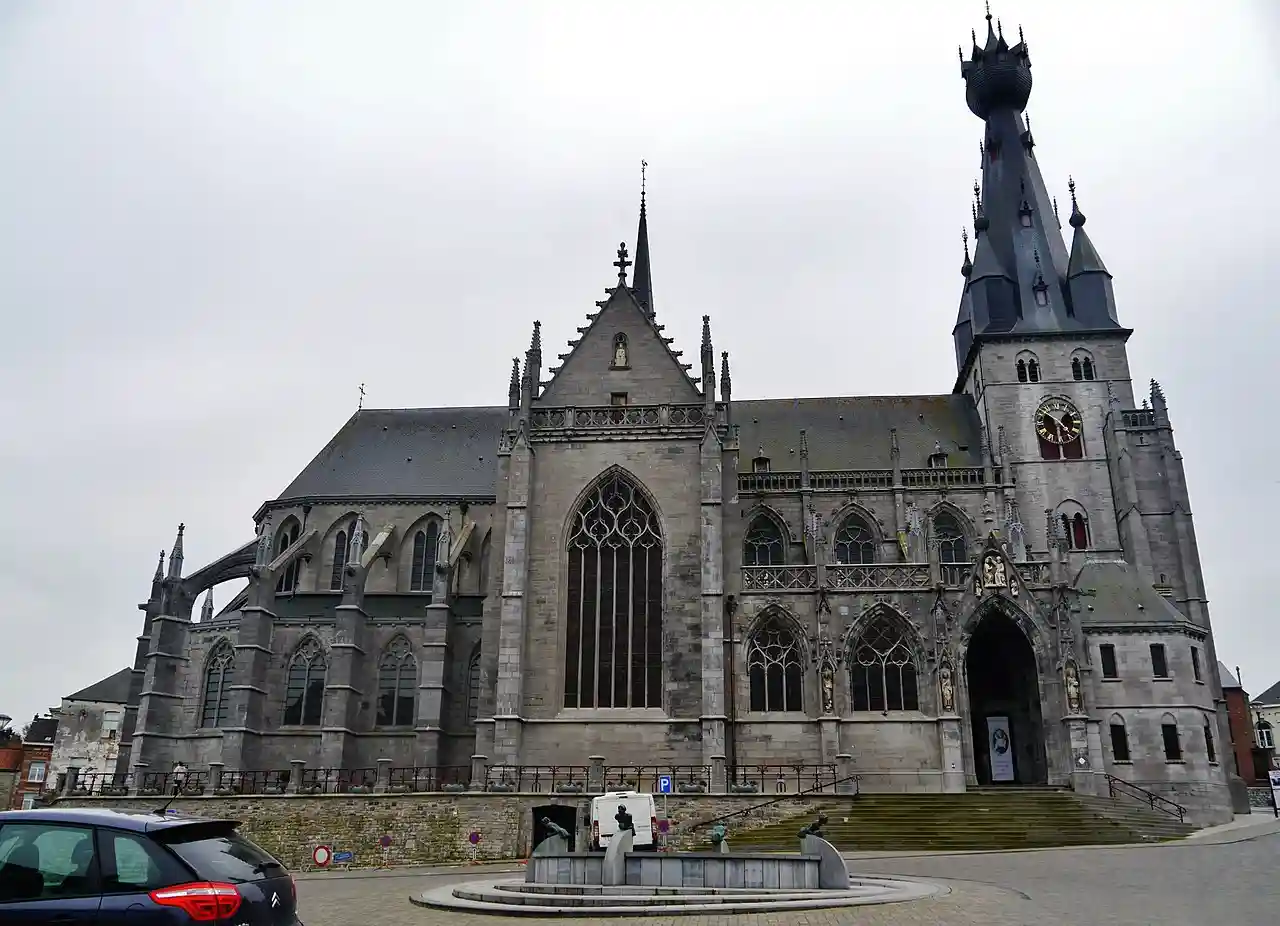 The Basilica of Saint Maternus (), also known as the basilica of Our Lady (basilique Notre-Dame) is a minor basilica in Walcourt, in the Namur Province of Belgium. According to legend, an oratory was founded here by Maternus of Cologne ( 285–315), who also carved a Madonna to replace an earlier pagan idol. The church does in fact contain a wooden Madonna, albeit from 950 to 1020, but still one of the oldest preserved Marian devotional statues in Western Christianity. The church was consecrated in 1026. The presence of the Madonna and its allegedly miraculous properties led to the development of the church into a pilgrimage site during the Middle Ages. Subsequently, the church was rebuilt into the Gothic edifice seen today between the 13th and 16th centuries. It contains a decorated rood screen from 1521, donated by Emperor Charles V, and decorated choir stalls from the early 16th century. The church has been damaged by fire and war on several occasions, most recently in May 1940 during World War II. Since 1941 it has been a listed building, and since 1950 classified as a minor basilica. Read more on Wikipedia