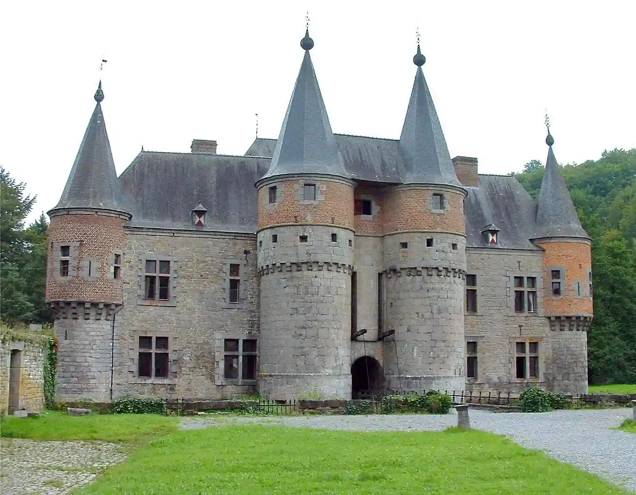 Spontin Castle () is a medieval castle in the village of Spontin in the municipality of Yvoir, province of Namur, Wallonia, Belgium. It has massive walls, its towers topped with slate and a moat with drawbridge. Read more on Wikipedia