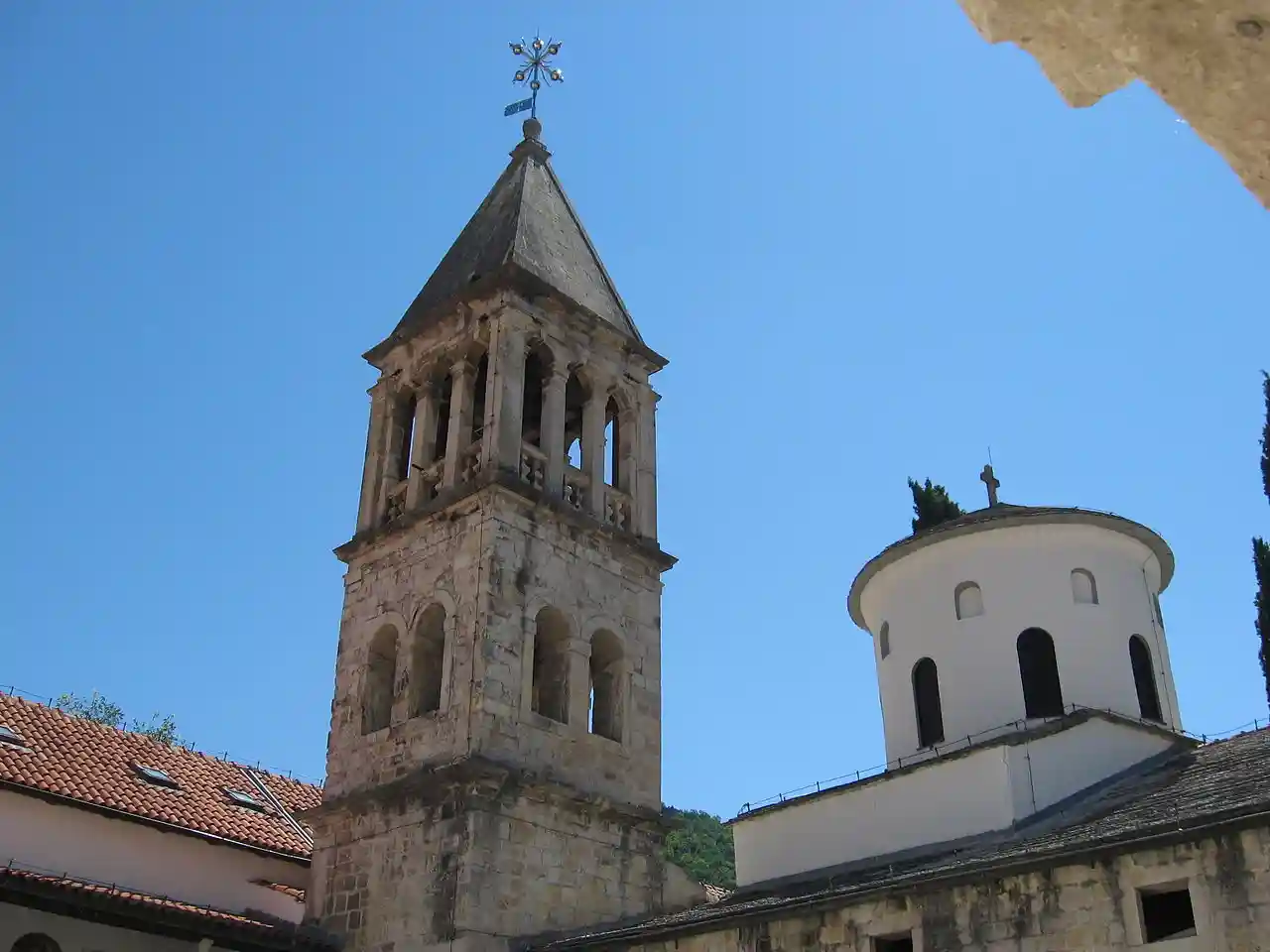 The Krka Monastery (, ; ) is a Serbian Orthodox monastery dedicated to the Archangel Michael, located near the river Krka, east of Kistanje, in central Dalmatia, Croatia. It is the best known monastery of the Serbian Orthodox Church in Croatia and it is officially protected as part of the Krka National Park. It was established around 1577 or later on the ground of previous Gothic-Romanesque style Catholic church. Read more on Wikipedia