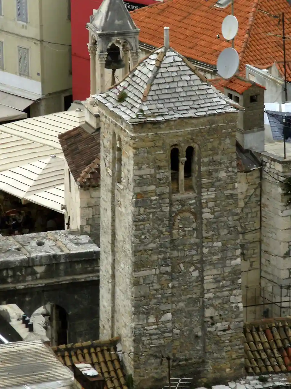 The Belltower of the Church of Our Lady of Zvonik () is a disused Roman Catholic church in Split, Croatia. Built into a small space (an early guardhouse) within the ancient Iron Gate of Diocletian's western wall. Today little survives of the building, apart from the belltower, one of the oldest in Croatia. Read more on Wikipedia