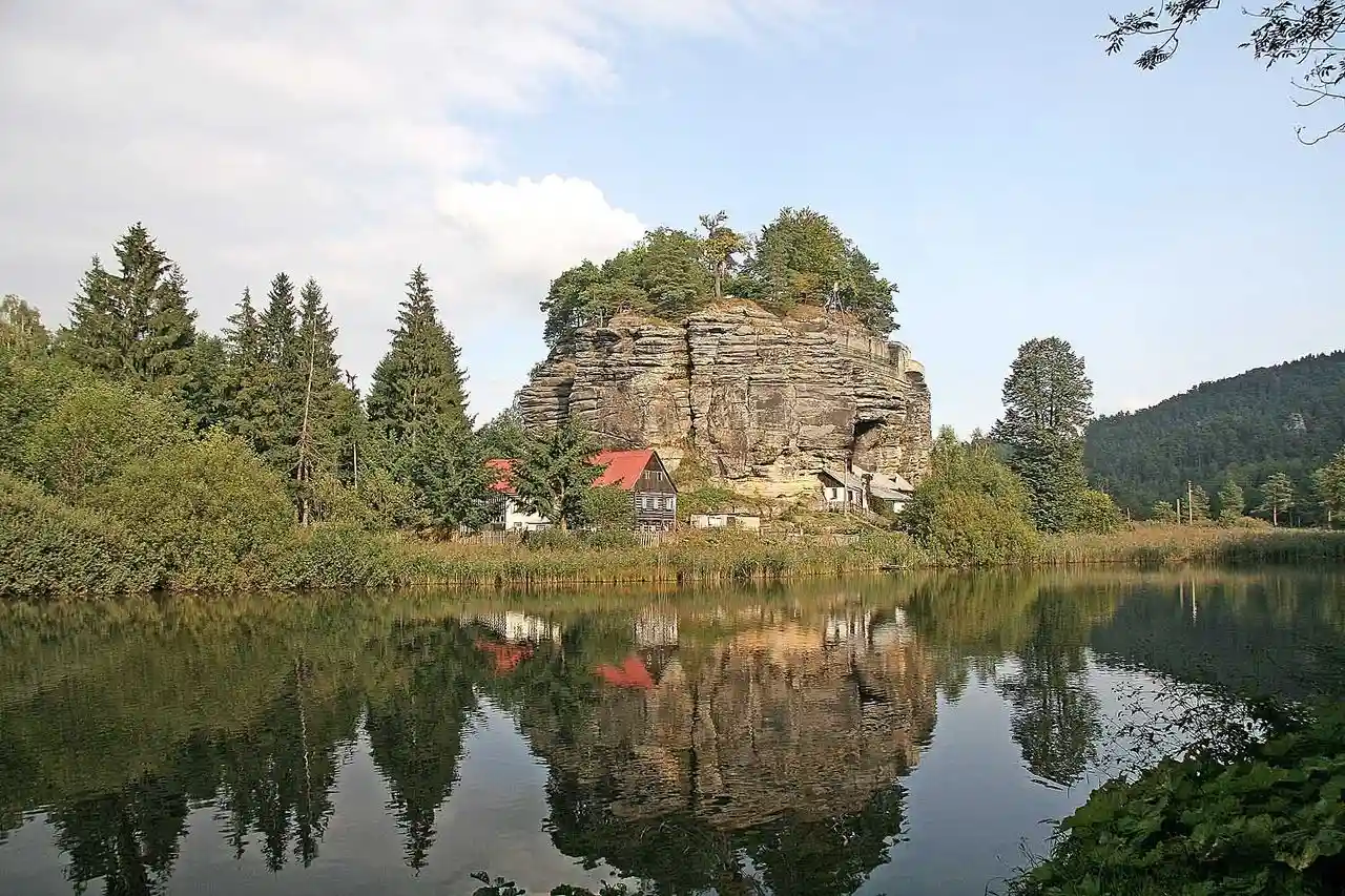 Sloup Castle ( or Pirkštejn; or Bürgstein) is a rock castle in the municipality of Sloup v Čechách in the Liberec Region of the Czech Republic. Read more on Wikipedia