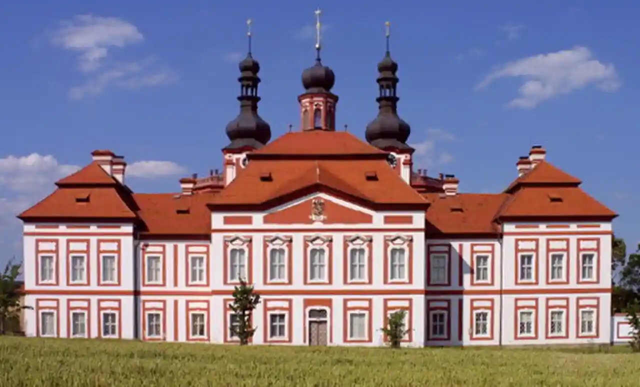 Mariánská Týnice is a former pilgrimage site in Kralovice in the Czech Republic. It is a complex of a monastery with the Baroque Church of the Annunciation and the Cistercian provost office built by Jan Santini Aichel in the 18th century. Today the monastery houses the Museum and Gallery of the Northern Plzeň Region. Read more on Wikipedia