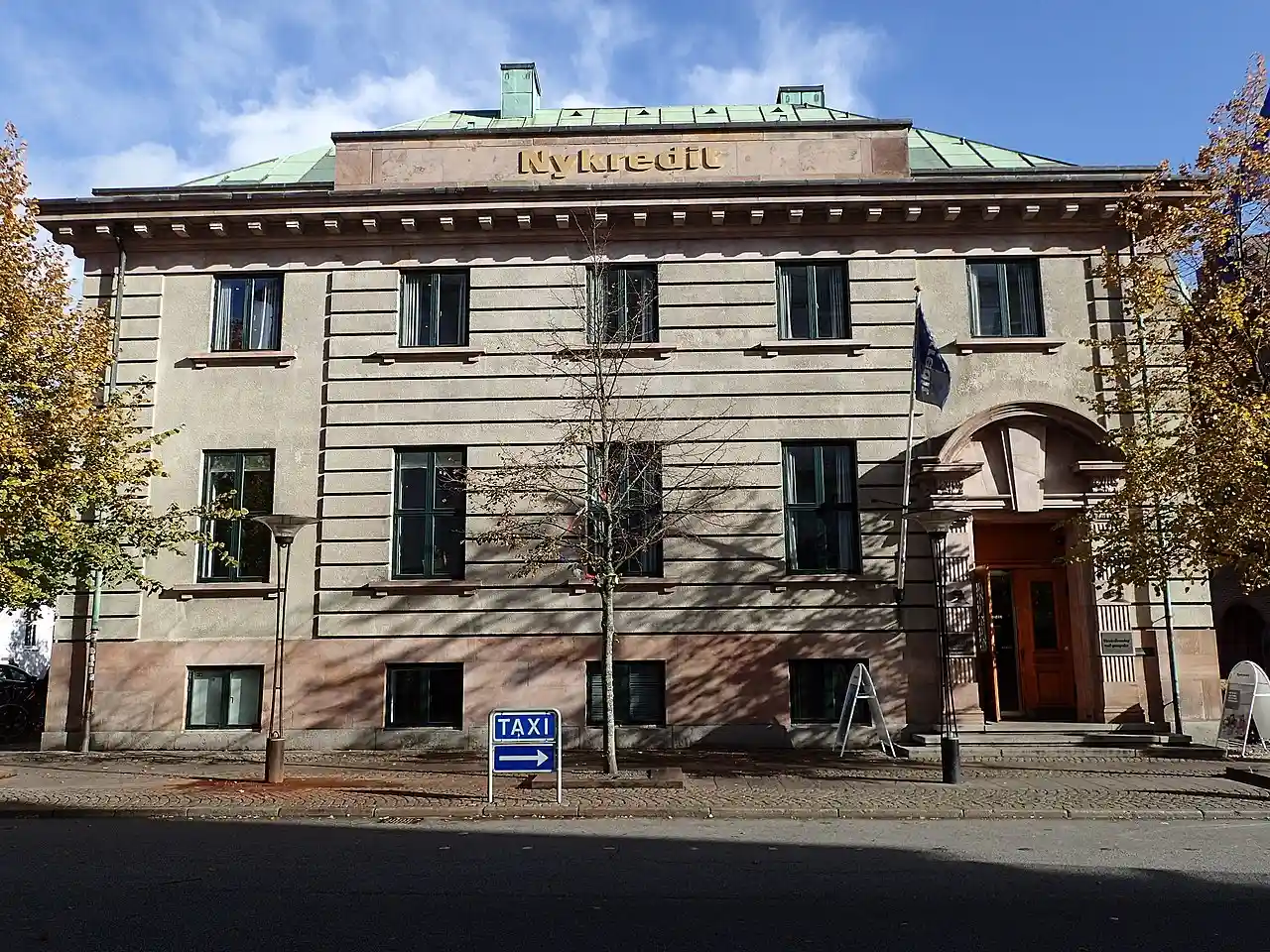 Domkirkepladsen 1 is a listed building and the former Bank of Denmark branch building in Aarhus, Denmark. The bank was built in 1926 and was listed in the Danish national registry of protected buildings and places by the Danish Heritage Agency on 22 February 1996. The bank is situated on the Store Torv square in the central Indre by neighbourhood next to the cathedral where it has functioned as a bank since its completion until today. The building is no longer in use by the Bank of Denmark but still functions as a bank, occupied by a branch of Nykredit. Read more on Wikipedia