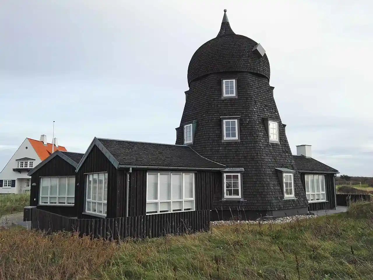 Lønstrup Mølle is a former smock mill in Lønstrup on the west coast of North Jutlandic Island in the north-west of Denmark. It was decommissioned in the beginning of the 20th century and has been converted into a private home. The sails broke off in the 1990s. Read more on Wikipedia