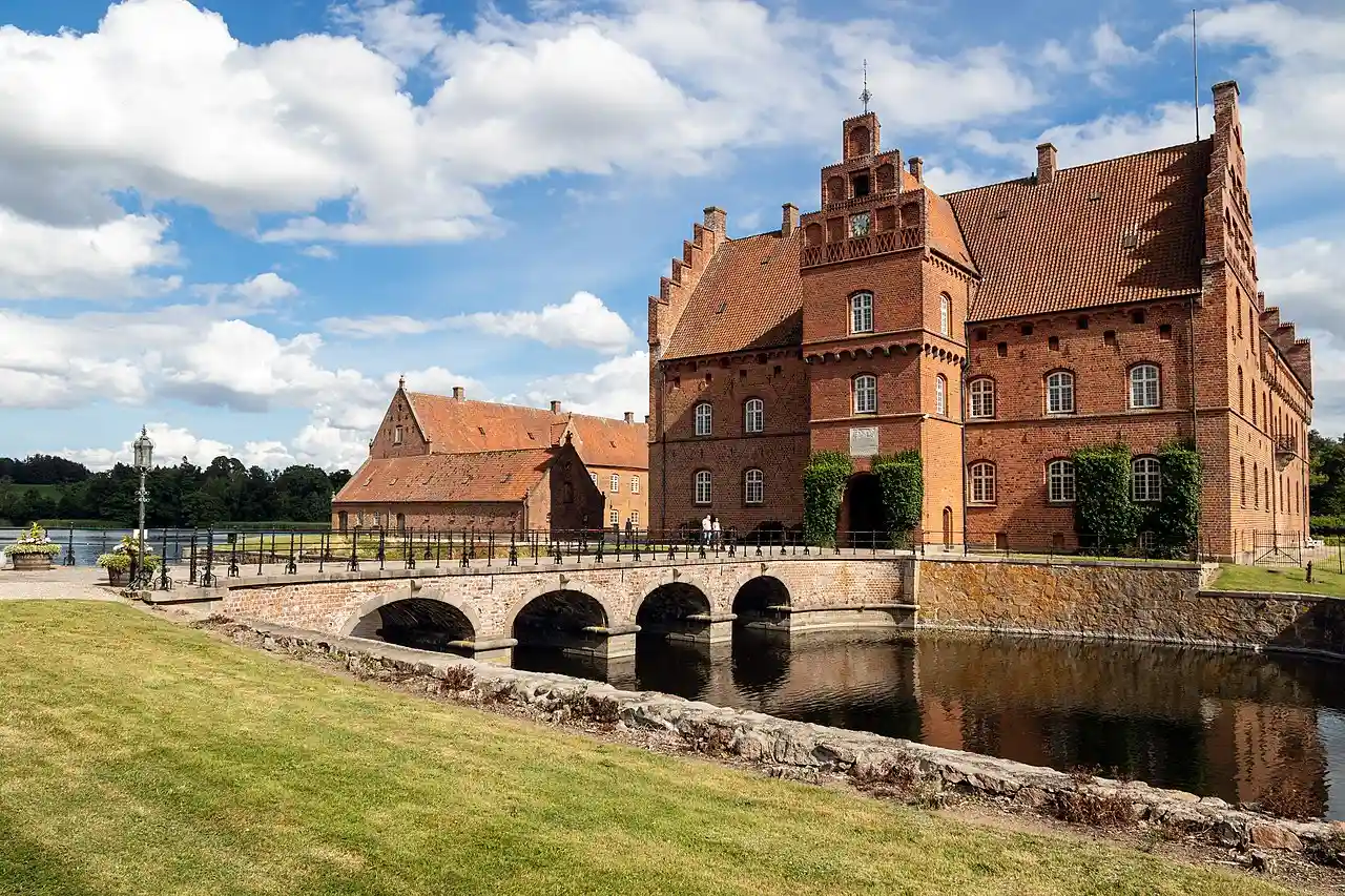 Gisselfeld, a former monastery, is Denmark's fifth-largest estate. Located between Haslev and Næstved, it extends into several municipalities but the main building is located in Braaby Parish in Faxe Municipality. The estate measures 3,850 hectares, including Hesede, Edelesminde, Brødebæk and Gødstrupgård, of which 2,400 hectares is forest. The three-storeyed Renaissance-style building has stepped gables, loopholes and a projecting tower over the main gate. The grounds include a moat, a well-kept park, lake, waterfall, gardens, greenhouse, and a fountain. A recent addition in its forest is a 45 meter tall hyperboloid tower. Read more on Wikipedia