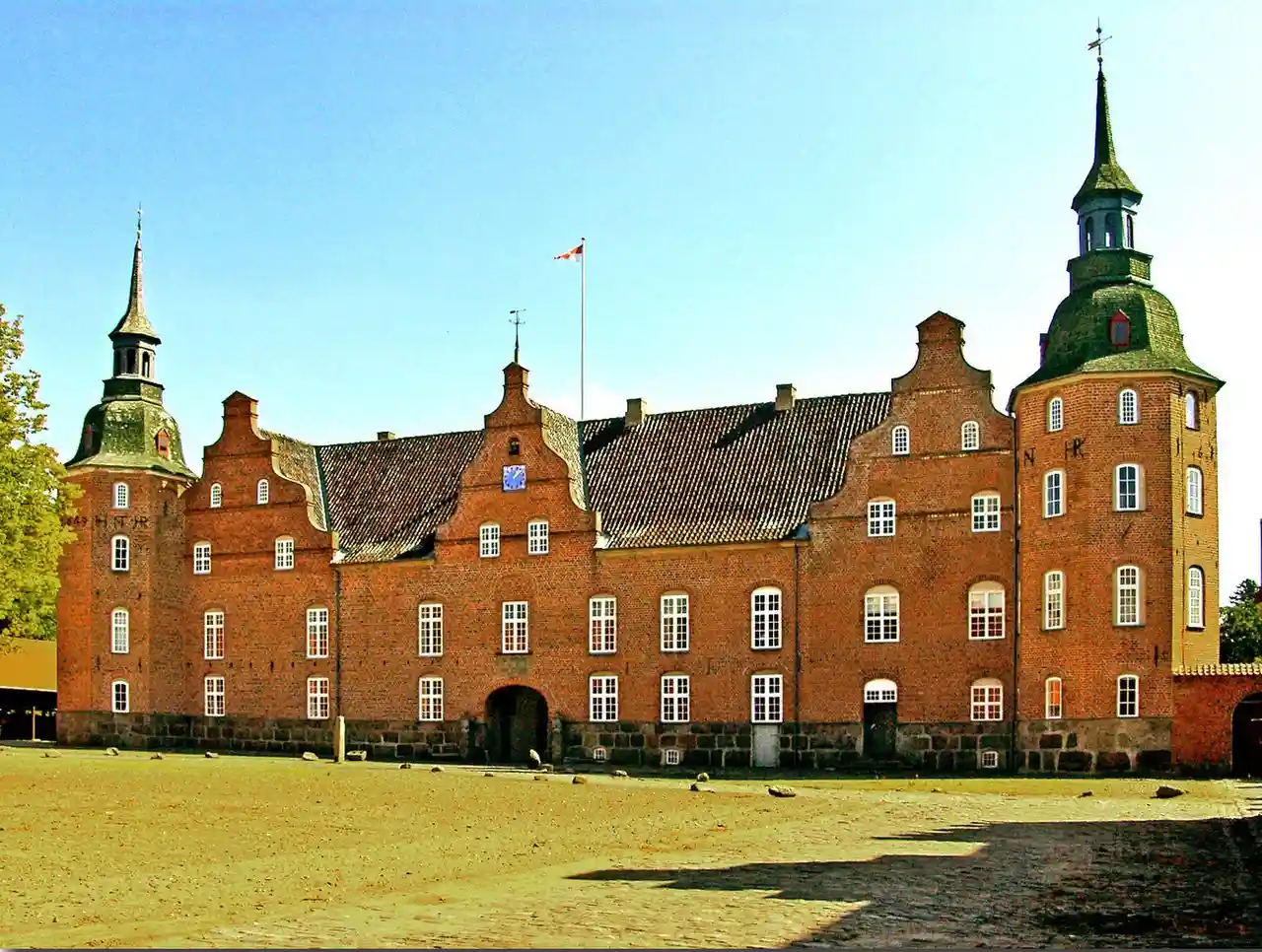 Holsteinborg Castle is a manor house located southeast of Skælskør, Slagelse Municipality, Denmark. It was built in the first half of the 17th century by members of the Trolle family, who gave it the name Trolholm, but has been owned by the Holstein family since 1707. Hans Christian Andersen was a frequent visitor to the estate in the middle of the 19th century. The main building is situated close to the coast, overlooking Holsteinborg Nor, a shallow watered cove which is almost closed off from the Småland Sea and Great Belt by Glænø, Glænø Stenfed and Glænø Østerfed. Read more on Wikipedia