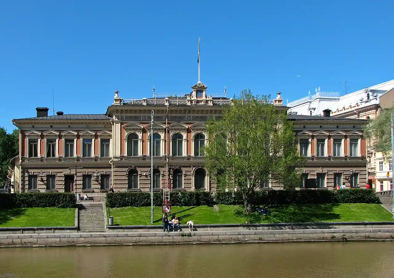 Turku City Hall (, ) is a Neo-Renaissance building located on the bank of the Aura River in Turku, Finland. The City Council of Turku convenes at Turku City Hall. The Mayor used to work in an Art Nouveau building near to the City Hall, the Turku City Office until 2011. Read more on Wikipedia
