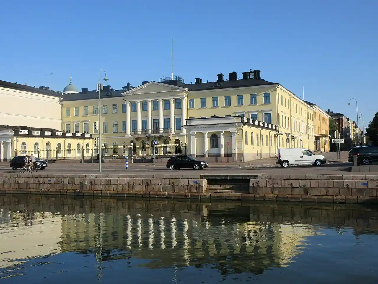 The Presidential Palace (, ) is one of the three official residences of the president of the Republic of Finland. It is situated in Helsinki, on the north side of Esplanadi, overlooking Market Square. Read more on Wikipedia