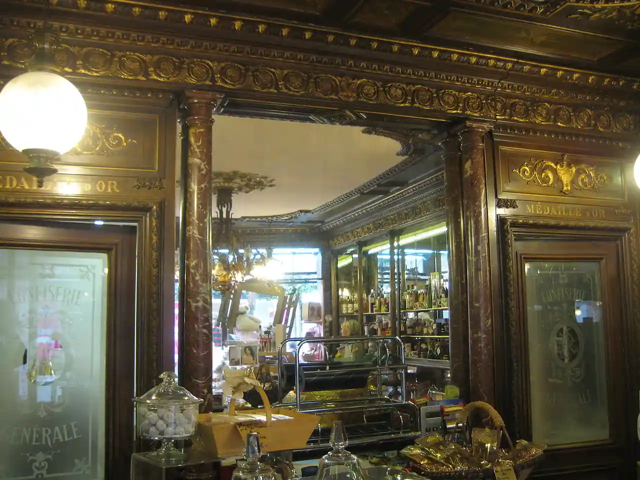 Aux Marocains is a confectionery, located 33 rue Clemenceau in the French spa city of Vichy in the Département of Allier, in center of France. Established in 1860, it is still active. Its name come from a candy — Le Marocain (The Marocan) — that was created there in the early 20th century and is still produced, a variant of another candy, the Négus de Nevers. The facade of the building, the storefront (Art Deco) and the interior of the shop (Second Empire-style) are listed on the Supplementary Inventory of Monument historique since 1990. Read more on Wikipedia