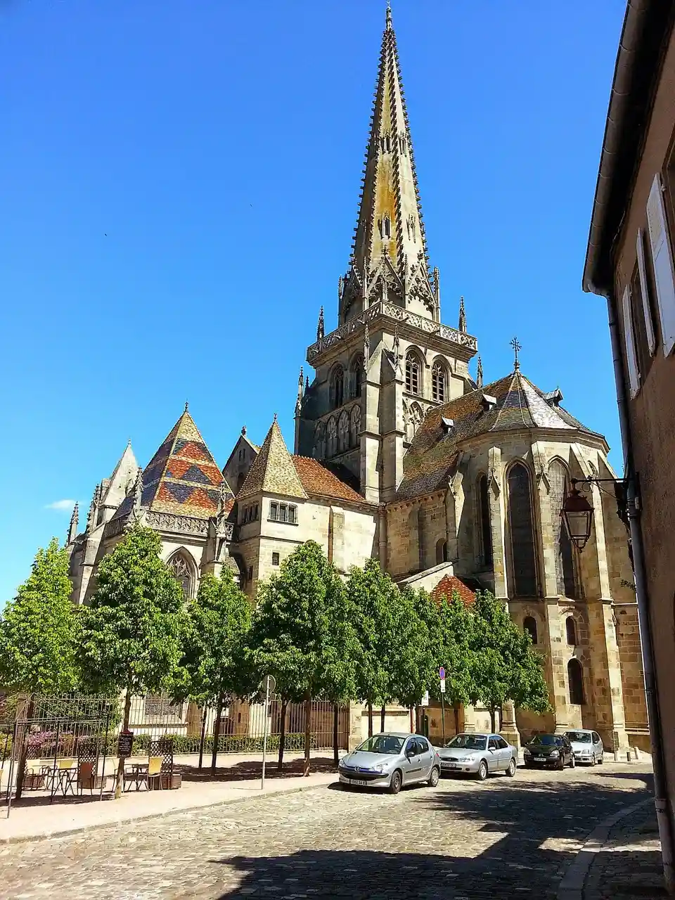 The Cathedral of Saint Lazarus of Autun (), commonly known as Autun Cathedral, is a Roman Catholic cathedral in Autun and a national monument of France. Famous for its Cluniac inspiration and its Romanesque sculptures by Gislebertus, it is a highlight of Romanesque art in Burgundy. It is the seat of the Bishop of Autun. The Bishop of Autun set forth the construction of St. Lazarus Cathedral as a result of the large movement of pilgrims travelling to Vezelay as they progressed on the pilgrimage route to Santiago de Compostela. Read more on Wikipedia