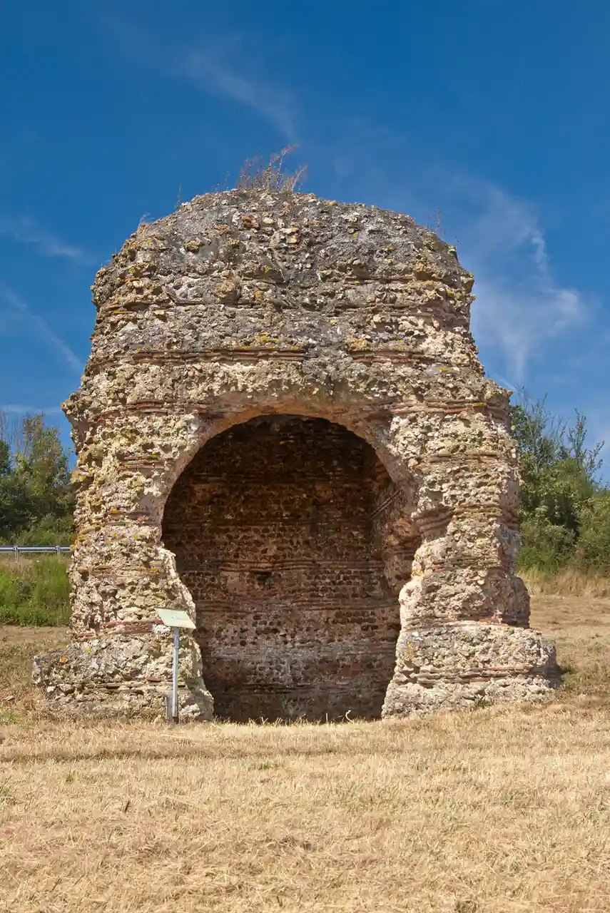 The Tour de Grisset (Grisset Tower) is the remains of a small, Gallo-Roman temple or fanum located in Fréteval, Loir-et-Cher, France. It is one of the few Gallo-Roman fana to still be standing, and perhaps the only one with its brick vault still in place. Excavations in the 1960s revealed a bath complex and series of other structures at the site, and it has been proposed that a small, secondary agglomeration of structures (possibly additional fana) may also exist there. Read more on Wikipedia