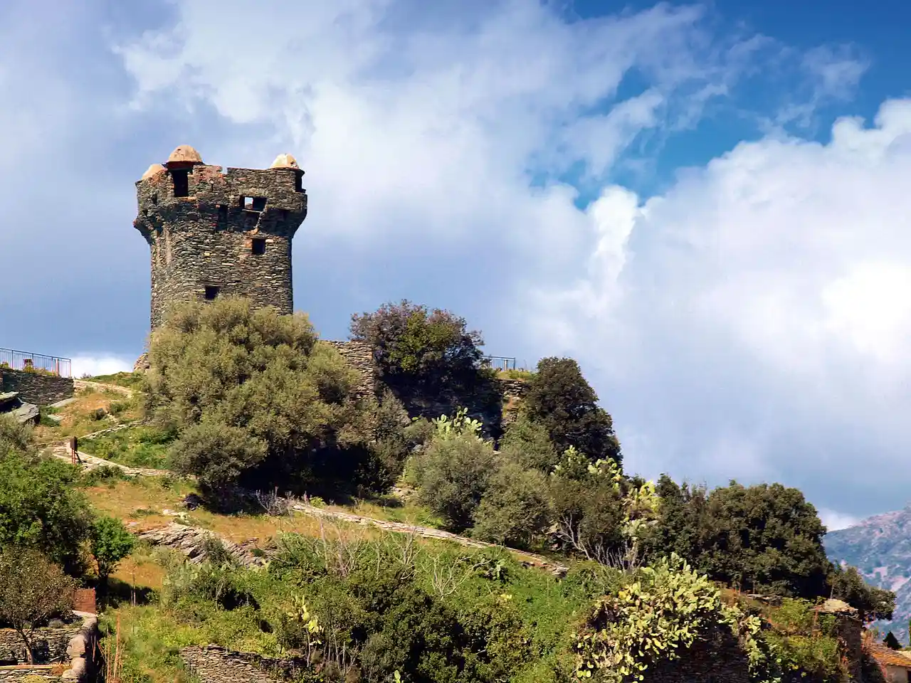 The Tower of Nonza () is a Genoese tower located in the commune of Nonza (Haute-Corse) on the coast of Corsica. The tower sits at an elevation of in the village of Nonza on the west coast of Capicorsu. Read more on Wikipedia