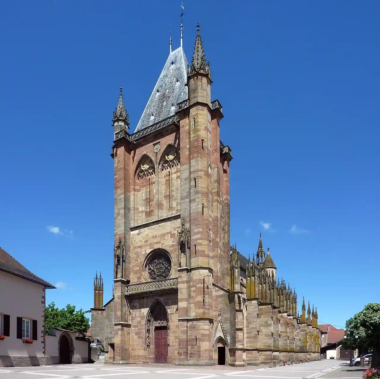The Roman CatholicNiederhaslach – Église catholique Saint-Jean Baptiste Parish church Saint John the Baptist (), formerly Collegiate church Saint Florentius (Collégiale Saint-Florent) is the main church of the small city of Niederhaslach in Alsace. The building is widely considered one of the finest and most ornate examples of Gothic architecture and Gothic art in the Bas-Rhin departement of France.HB Kunstführer Straßburg - Colmar - Elsaß, 1986, Read more on Wikipedia