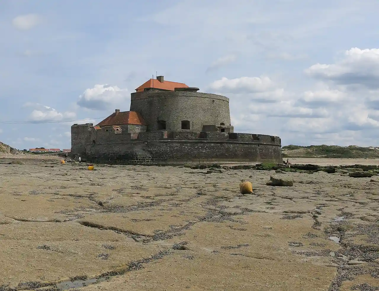 Fort Mahon ( or Fort Vauban) is a sea fort by the commune of Ambleteuse in the Pas-de-Calais, northern France. The fort was built at the end of the 17th century by the military architect Vauban on the orders of Louis XIV to defend the port in the estuary of the Slack. It was designated a Monument historique in the 1960s. Read more on Wikipedia