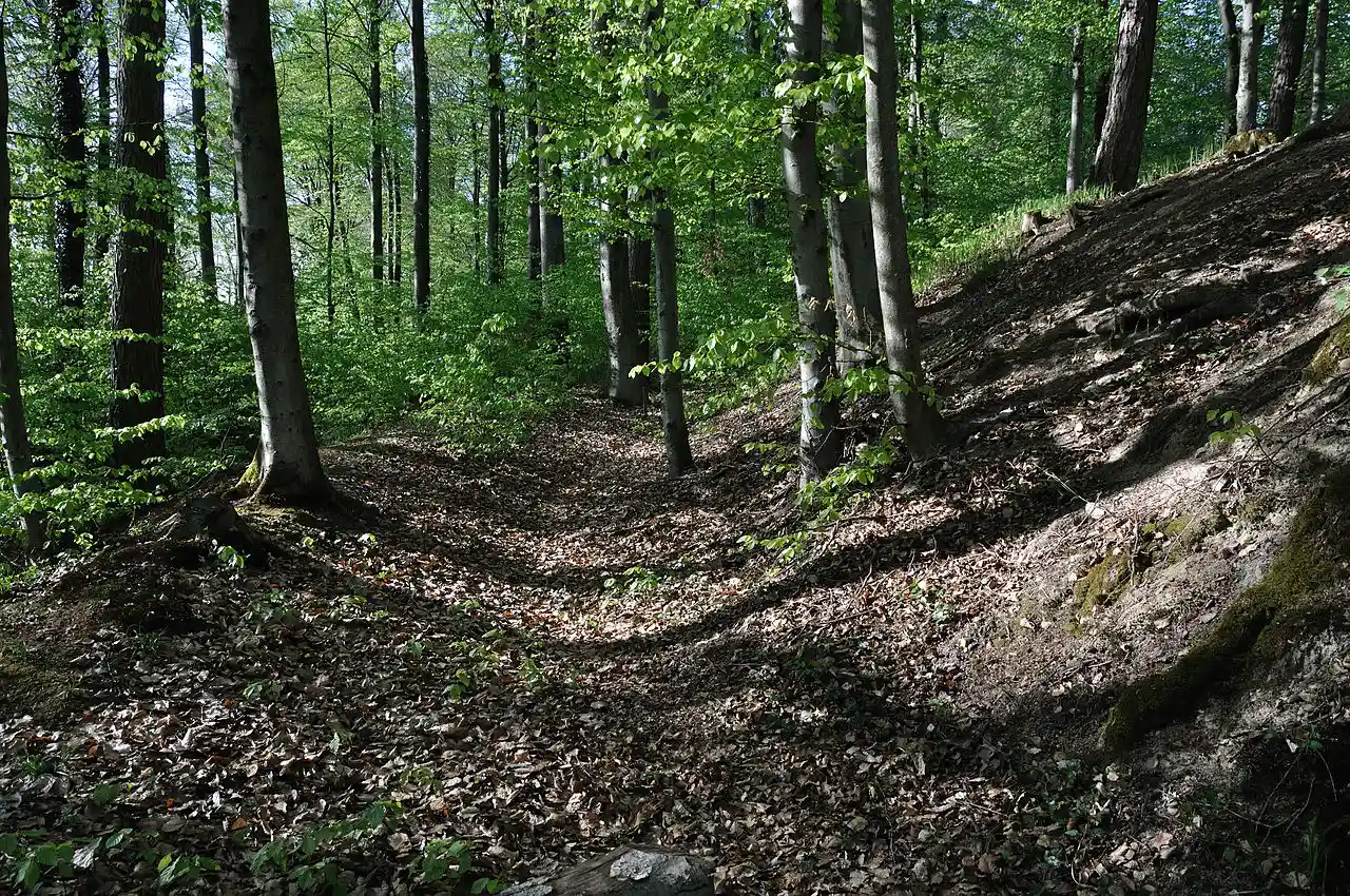 Altraderach Castle (), also called the Old Castle (Alte Burg) or Little Heathen Palace (Heidenschlösschen), is a levelled castle in the area between Unterraderach and Raderach. The still easily visible burgstall lies in the parish of Kluftern in the borough of Friedrichshafen in the county of Bodenseekreis in the German state of Baden-Württemberg. Read more on Wikipedia