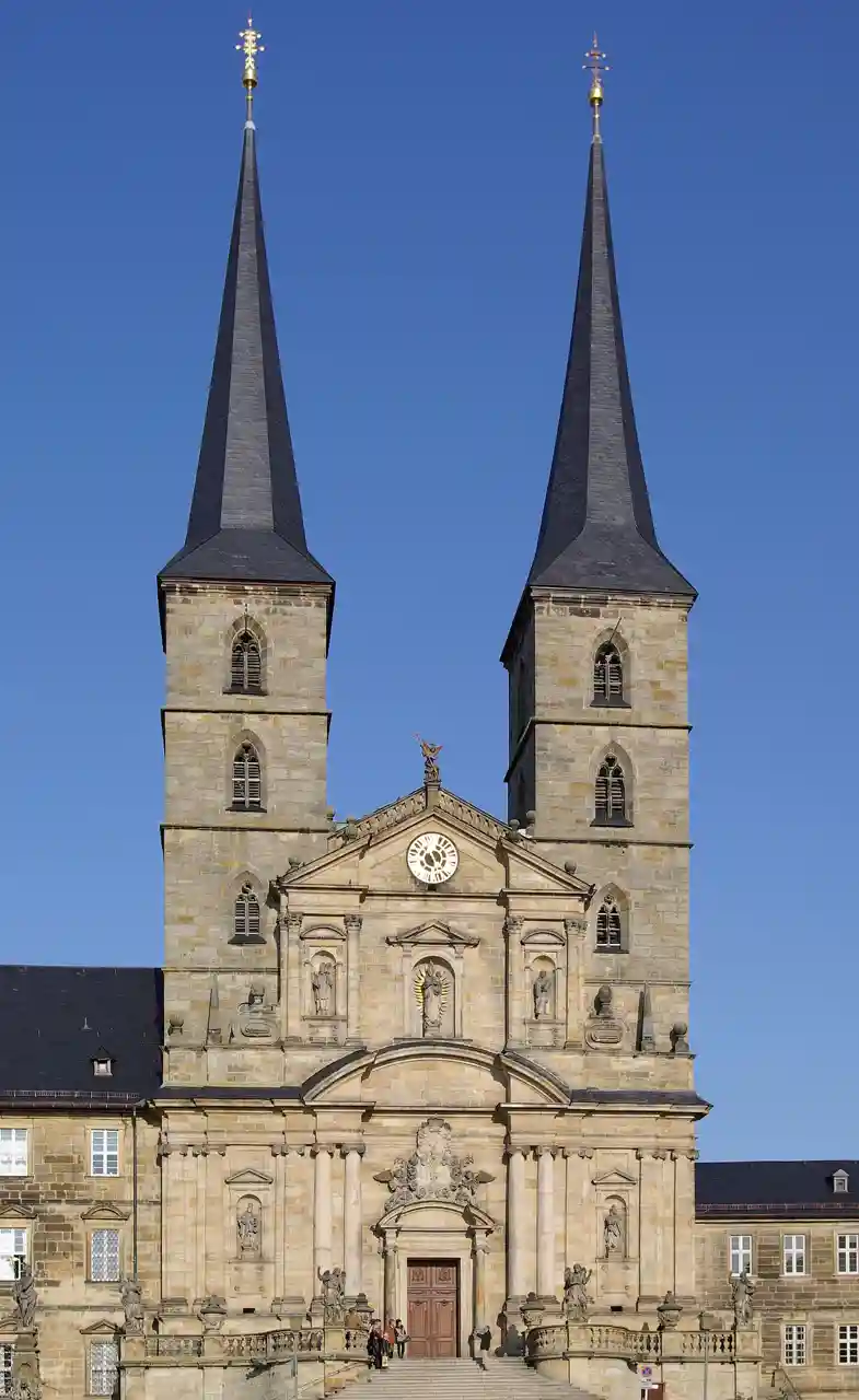 Michaelsberg Abbey or Michelsberg Abbey, also St. Michael's Abbey, Bamberg ( or Michelsberg) is a former Benedictine monastery in Bamberg in Bavaria, Germany. After its dissolution in 1803 the buildings were used for the almshouse Vereinigtes Katharinen- und Elisabethen-Spital, which is still there as a retirement home. The former abbey church remains in use as the Michaelskirche. Read more on Wikipedia