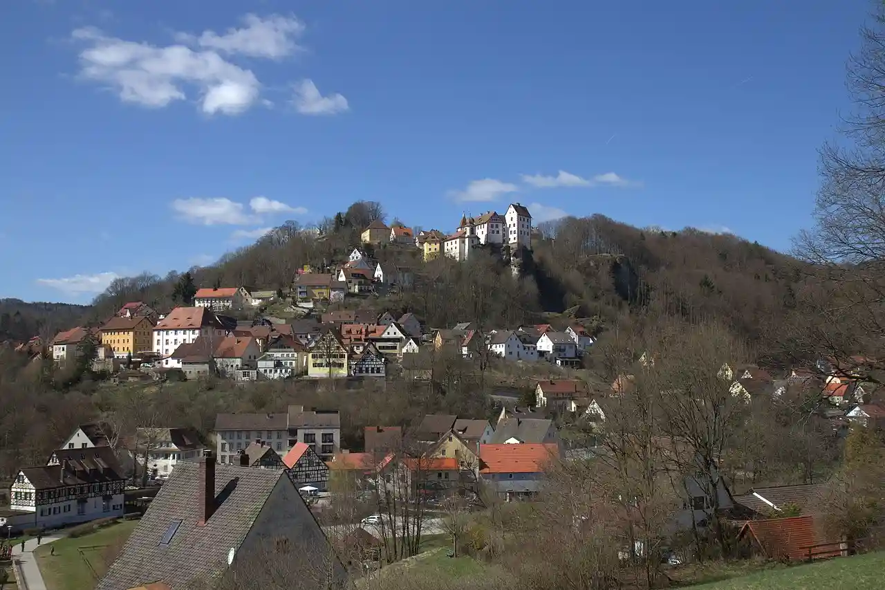 Egloffstein Castle () is a former high mediaeval, aristocratic castle, that stands immediately west of the eponymous village of Egloffstein in the Upper Franconian county of Forchheim in the German state of Bavaria. Read more on Wikipedia