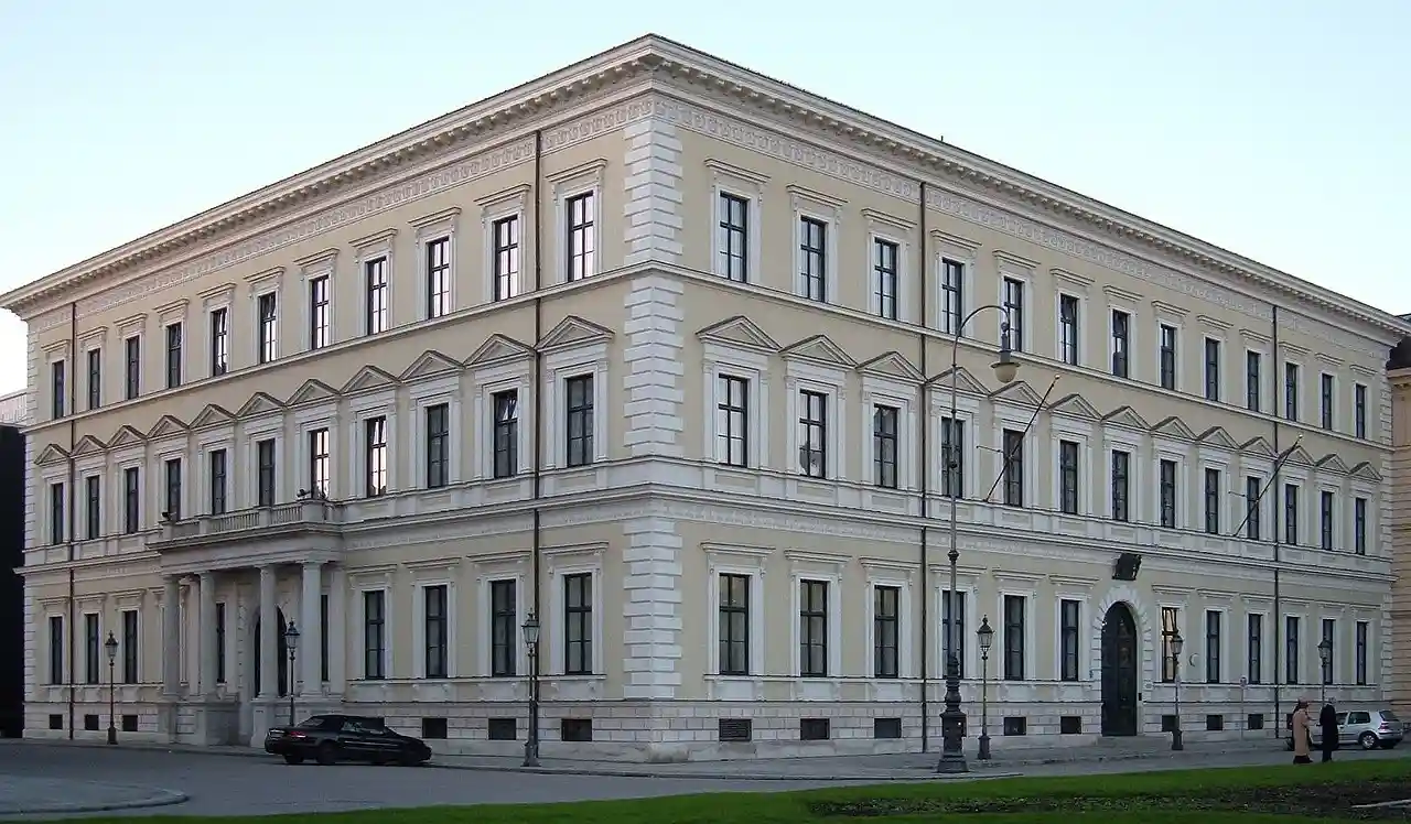 The Palais Leuchtenberg, (known between 1853 and 1933 as the Luitpold Palais or Prinz Luitpold Palais) built in the early 19th century for Eugène de Beauharnais, first Duke of Leuchtenberg, is the largest palace in Munich. Located on the west side of the Odeonsplatz (Odeon Square), where it forms an ensemble with the Odeon, it currently houses the Bavarian State Ministry of Finance. It was once home to the Leuchtenberg Gallery on the first floor. Read more on Wikipedia