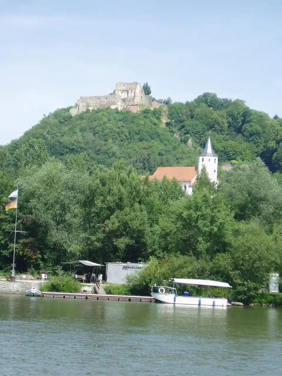 Donaustauf Castle () is a ruined hill castle located at a height of on a hill spur overlooking the River Danube by the market village of Donaustauf in the Upper Palatine county of Regensburg in the south German state of Bavaria. Donaustauf grew up during the Middle Ages under the protection of the mighty fortifications of the castle. Read more on Wikipedia