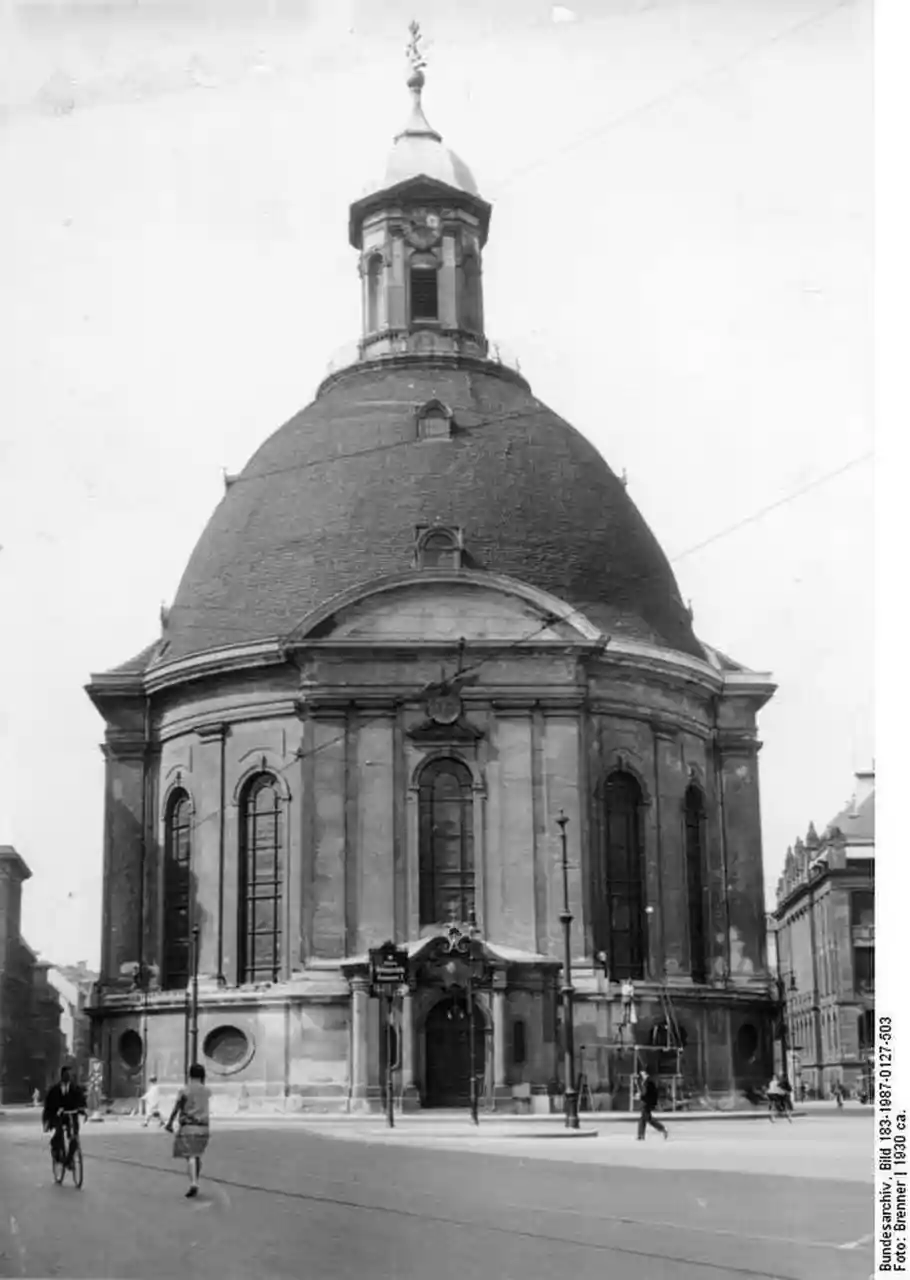 Trinity Church (Dreifaltigkeitskirche) was a Baroque Protestant church in Berlin, eastern Germany, dedicated to the Holy Trinity. It was opened in August 1739 and destroyed in November 1943, with its rubble removed in 1947. Read more on Wikipedia