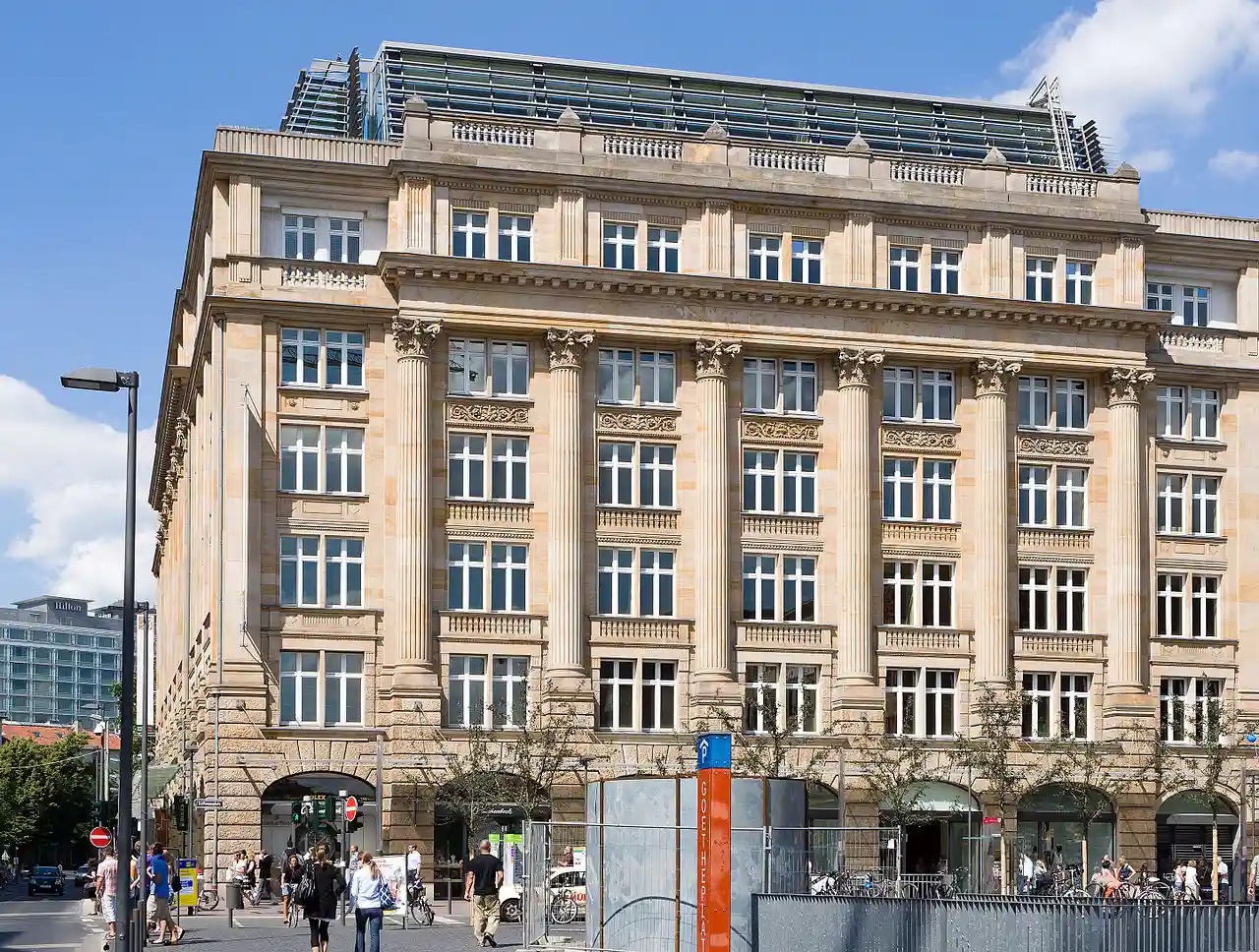 Börsenstraße 2–4 is an 8-story low-rise neoclassical building in Frankfurt, Germany. It directly faces the Börsenstraße (Stock Exchange Street) and the Freßgass to the west, the Börsenplatz (Stock Exchange Square) and the Frankfurt Stock Exchange to the north, and the Biebergasse and the Rathenauplatz to the south. The Hauptwache is located fifty metres down the Biebergasse in the eastern direction. It thus occupies a highly central position in the Frankfurt central city district. Read more on Wikipedia