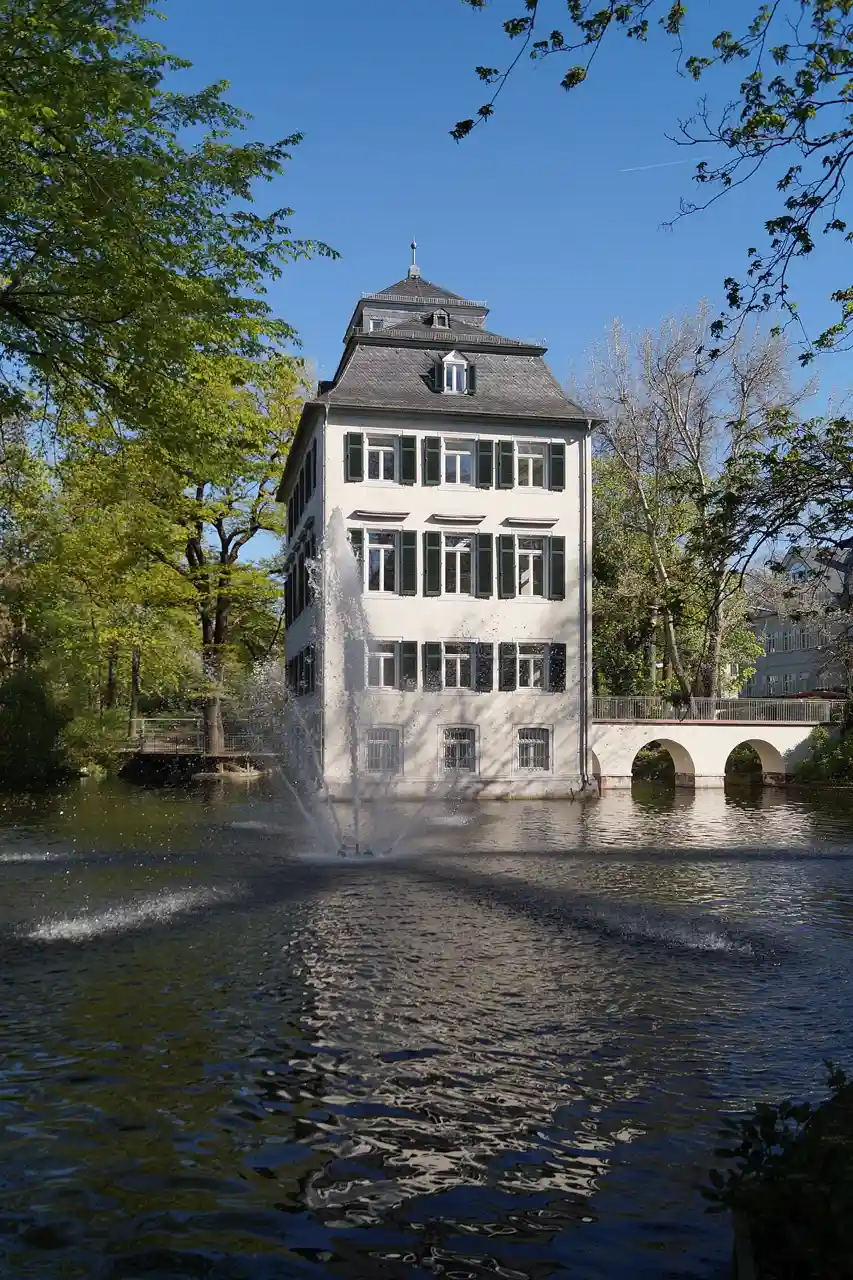The (Little Holzhausen palace) is a moated former country house built by the patrician Holzhausen family on their farm, then just north of Frankfurt and now in the city's Nordend. The present building was completed in 1729, built for Johann Hieronymus von Holzhausen on the foundations of a moated castle from the Middle Ages after a design by Louis Remy de la Fosse. Today, it serves as a venue for cultural events. Read more on Wikipedia