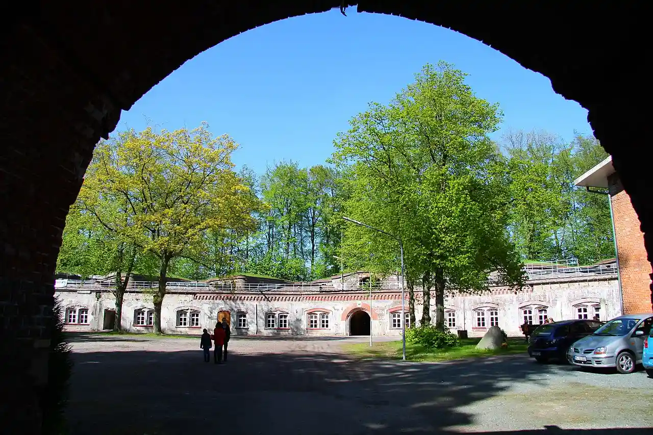 Grauerort fortress is a German artillery fort on Elbe river about 9 km (5.6 mi) north of Stade which was built between 1869 and 1879 to defend the Port of Hamburg. Its shape is hexagonal, taking advantage of the topography of the area and the location of the previously existing levee. The main armament of the fort were probably ten 21 cm breech-loading guns (as opposed to the initially planned four 28 cm and six 21 cm guns), but they are no longer in place. There were also 4 12 cm and six 9 cm guns. Construction materials were cement and brick; concrete was only used from 1885 onward. Read more on Wikipedia