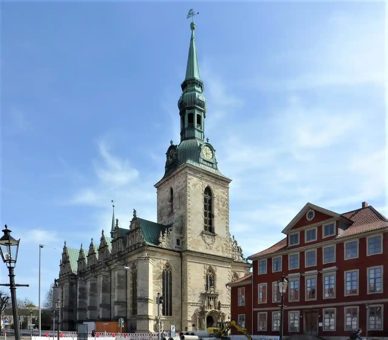 The Marienkirche is a main church (Hauptkirche) in Wolfenbüttel, Lower Saxony, Germany. The official name of the Lutheran church is Hauptkirche Beatae Mariae Virginis (Main church of the Blessed Virgin Mary). Short common names are Hauptkirche BMV, or simply BMV. It is regarded as the first major Protestant church. It was commissioned by Henry Julius, Duke of Brunswick-Lüneburg. Building began in 1608, directed by Baumeister Paul Francke. The portals in the north and south are attributed to . Read more on Wikipedia