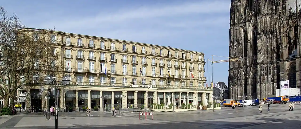 The Dom-Hotel is a five-star hotel in Cologne, Germany, located on Roncalliplatz in Innenstadt. The hotel is named after Cologne Cathedral (the Dom), which is its direct neighbour. The hotels is one of the oldest grand hotels in Europe; its location and history make it one of the city's most prominent buildings. Read more on Wikipedia