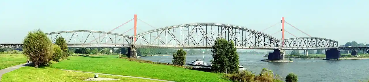 The Haus-Knipp railway bridge () is a railway bridge over the Rhine north of the port of Duisburg-Ruhrort between Duisburg-Beeckerwerth and Duisburg-Baerl on the route of the Oberhausen–Moers railway in the German state of North Rhine-Westphalia. Read more on Wikipedia