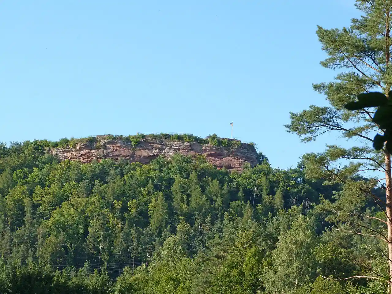 Falkenburg Castle is a castle ruin overlooking the village of Wilgartswiesen in the Palatinate Forest in Rhineland-Palatinate, Germany. Like almost all castles in this region it was built on sandstone. Read more on Wikipedia