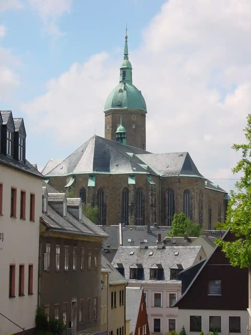 St. Anne's Church () in Annaberg-Buchholz, German Free State of Saxony, is a hall church whose architectural style is on the boundary between the Late Gothic and Saxon Renaissance. With a length of and width of , it is the largest, true hall church of the Late Gothic in Saxony. Its tower is high, the interior of the church high. It is the emblem of the town and visible from a long way off. Saint Anne's was originally built in 1499 as a Roman Catholic church, but became Lutheran in 1539. Read more on Wikipedia