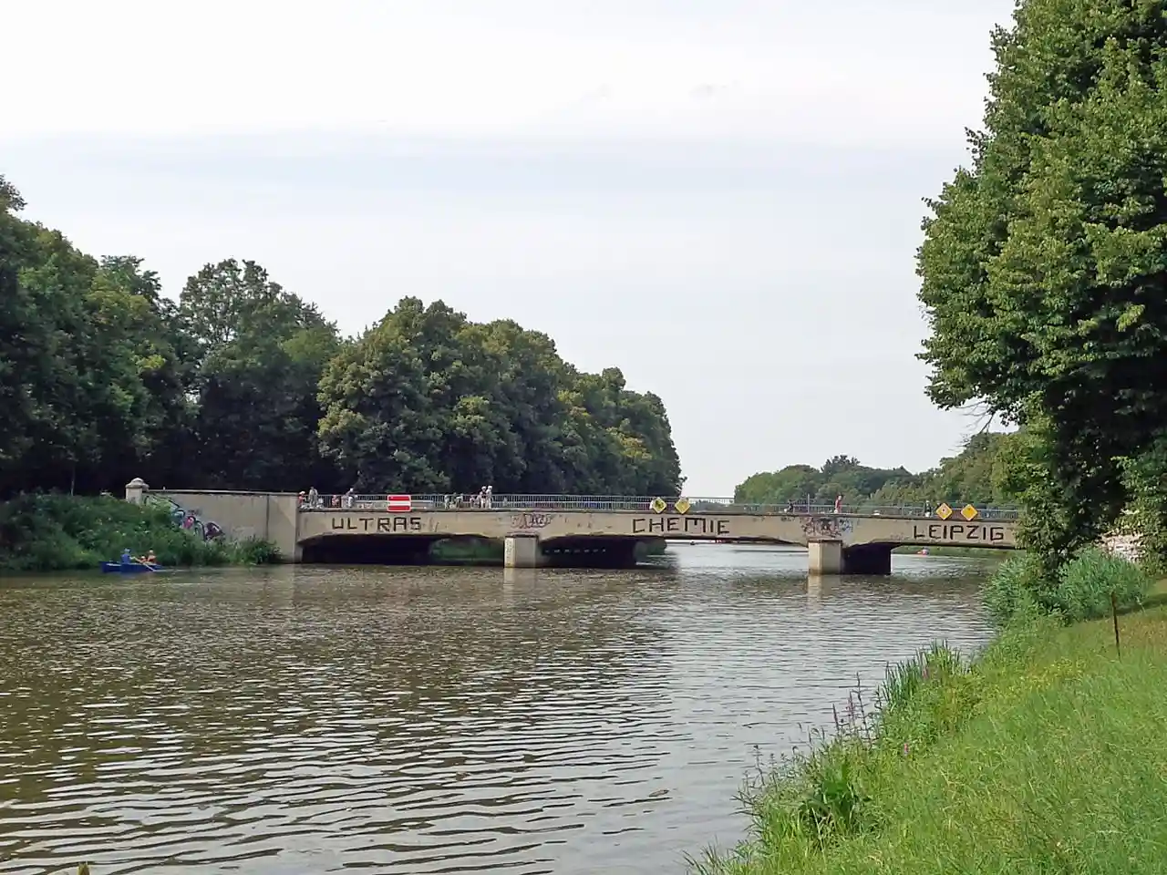 The Saxons' Bridge (Litt.: Sachsenbrücke) over the Elsterflutbett (the flood channel of the Elster) connects the eastern and western parts of Clara Zetkin Park (formerly King Albert Park) in Leipzig, Germany. Located southwest of the city center, it also provides a car-free connection for pedestrians and cyclists from the center to the western part of Leipzig via Anton-Bruckner-Allee. According to the data from the 2021/22 traffic count, the Saxons' Bridge has the highest traffic occupancy with over 15,000 cyclists per day in cycling in Leipzig. Read more on Wikipedia