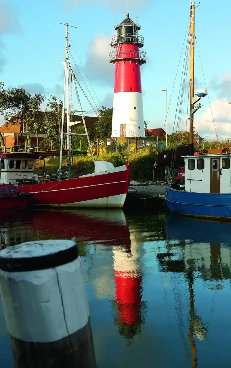 Büsum Lighthouse () is an active 20th century lighthouse located in Büsum a fishing and tourist town, which lies on North Sea coast of Schleswig-Holstein, in Germany. The current lighthouse is the second to be built in the town, two other separate breakwater lights mark the entrance of the small harbour from the North Sea. Read more on Wikipedia