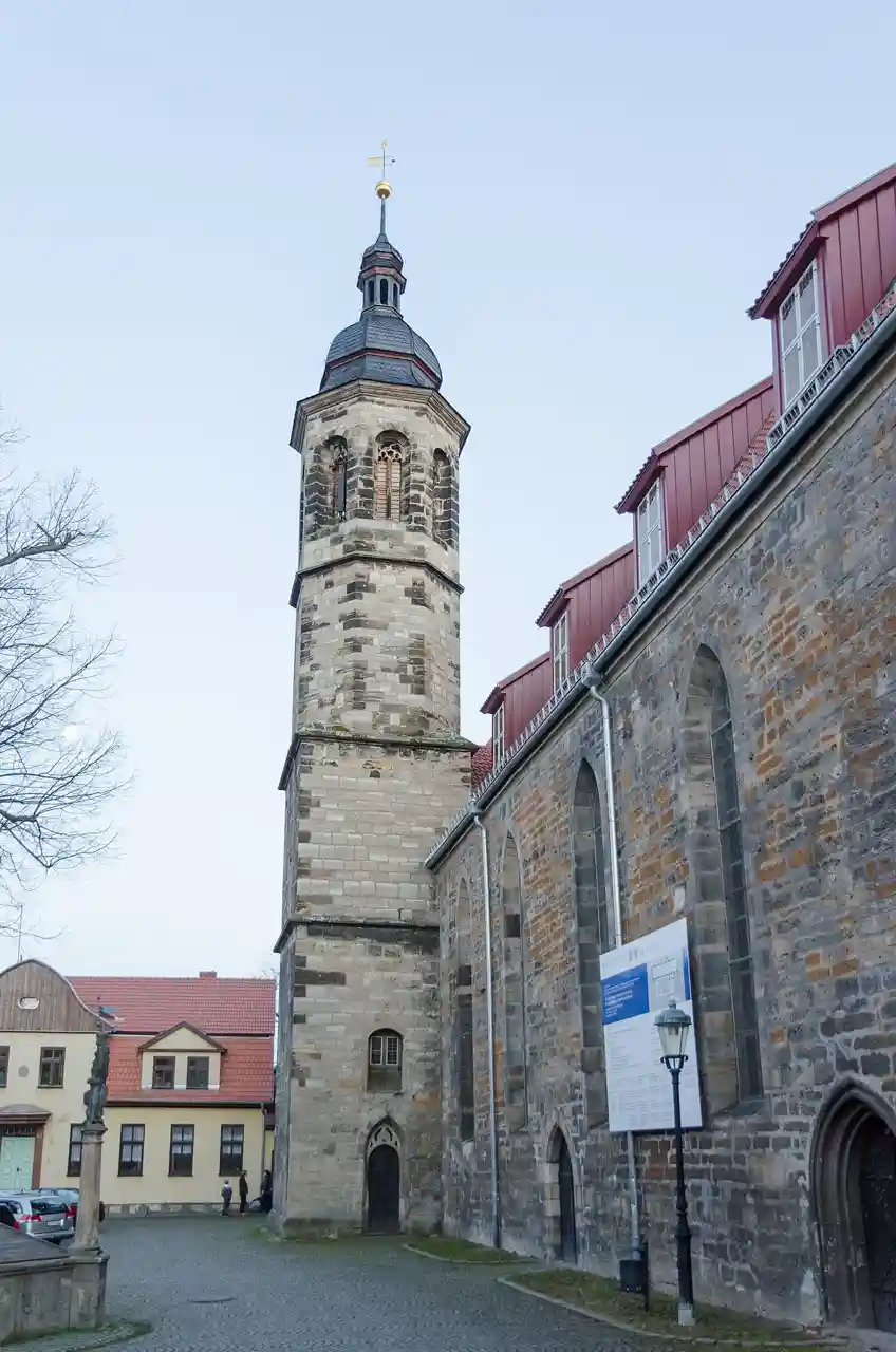 The Oberkirche (, "Upper Church") in the Thuringian town of Arnstadt, Germany, is a former Franciscan monastery church mainly built in the 13th century. Since 1538, it has been used by the Lutheran parish of Arnstadt, which today belongs to the Arnstadt-Ilmenau church district of the Protestant Church in Central Germany. It is a listed building. Read more on Wikipedia