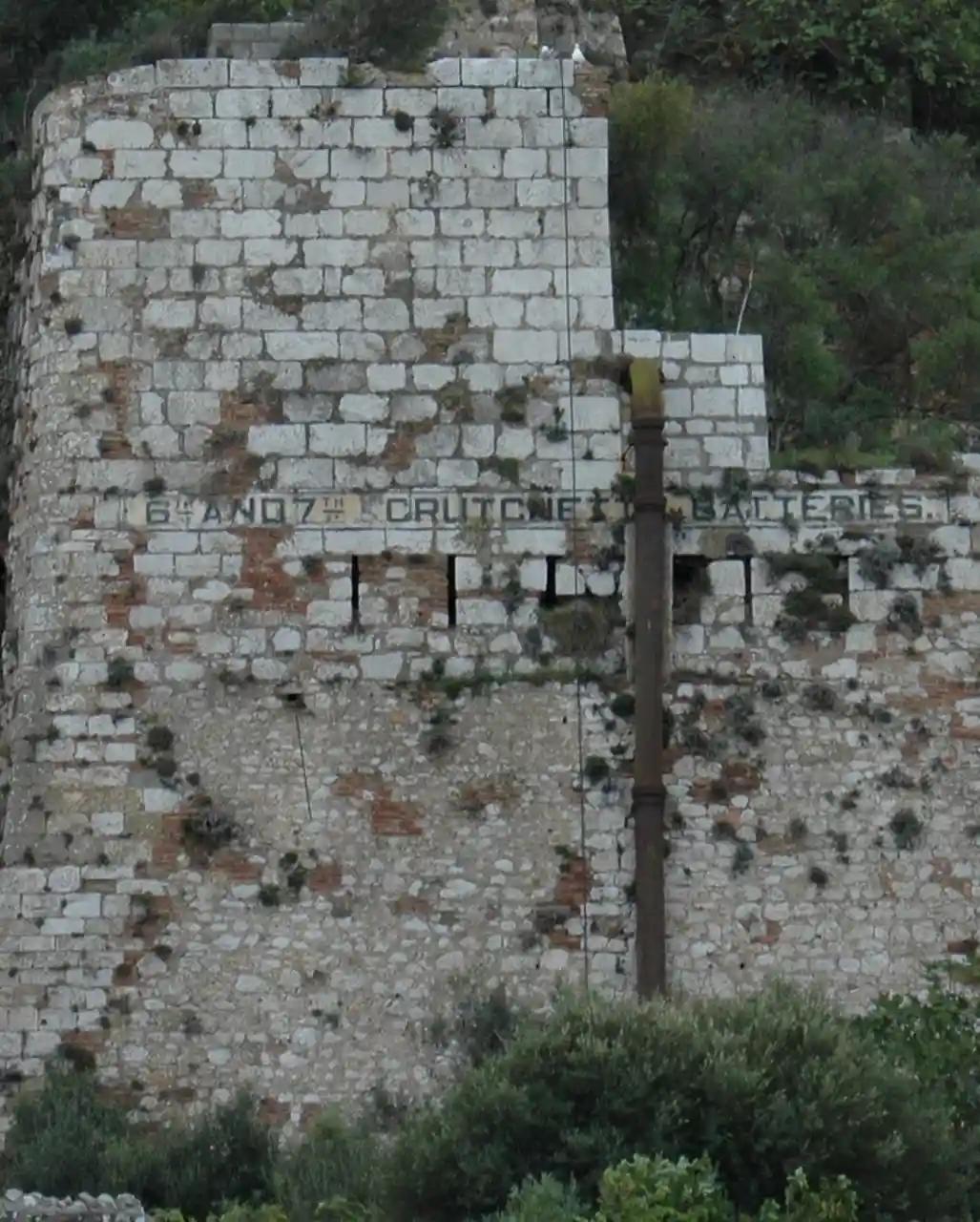 Castle Batteries are a series of artillery batteries that are part of the Northern Defences of the British Overseas Territory of Gibraltar. The batteries descend from the Moorish Castle to end at the sixth and seven batteries which are known as Crutchett's Batteries. There are brick vaulted bombproof rooms (casemates) under Crutchets Battery. Read more on Wikipedia