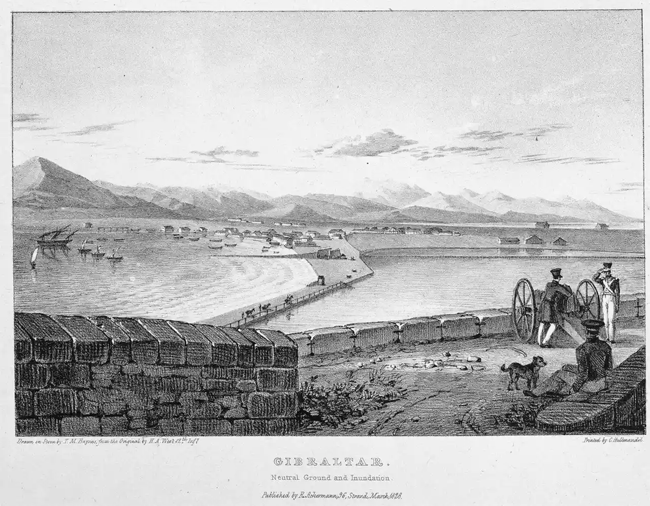 The Inundation was a flooded and fortified area of ground on the sandy isthmus between Spain and Gibraltar, created by the British in the 18th century to restrict access to the territory as part of the fortifications of Gibraltar. It was originally a marshy area known as the Morass at the far south-western end of the isthmus, occupying the area adjacent to the north-western flank of the Rock of Gibraltar.Hughes & Migos, p. 267 The Morass was dug out and expanded to create an artificial lake which was further obstructed by iron and wooden obstacles in the water. Two small fortifications on either side controlled access to Gibraltar. The only road to and from the town ran along a narrow causeway between the Inundation and the sea which was enfiladed by batteries mounted on the lower slopes of the Rock.Landmann, "Gibraltar" The Inundation existed for about 200 years before it was infilled and built over after the Second World War. Read more on Wikipedia