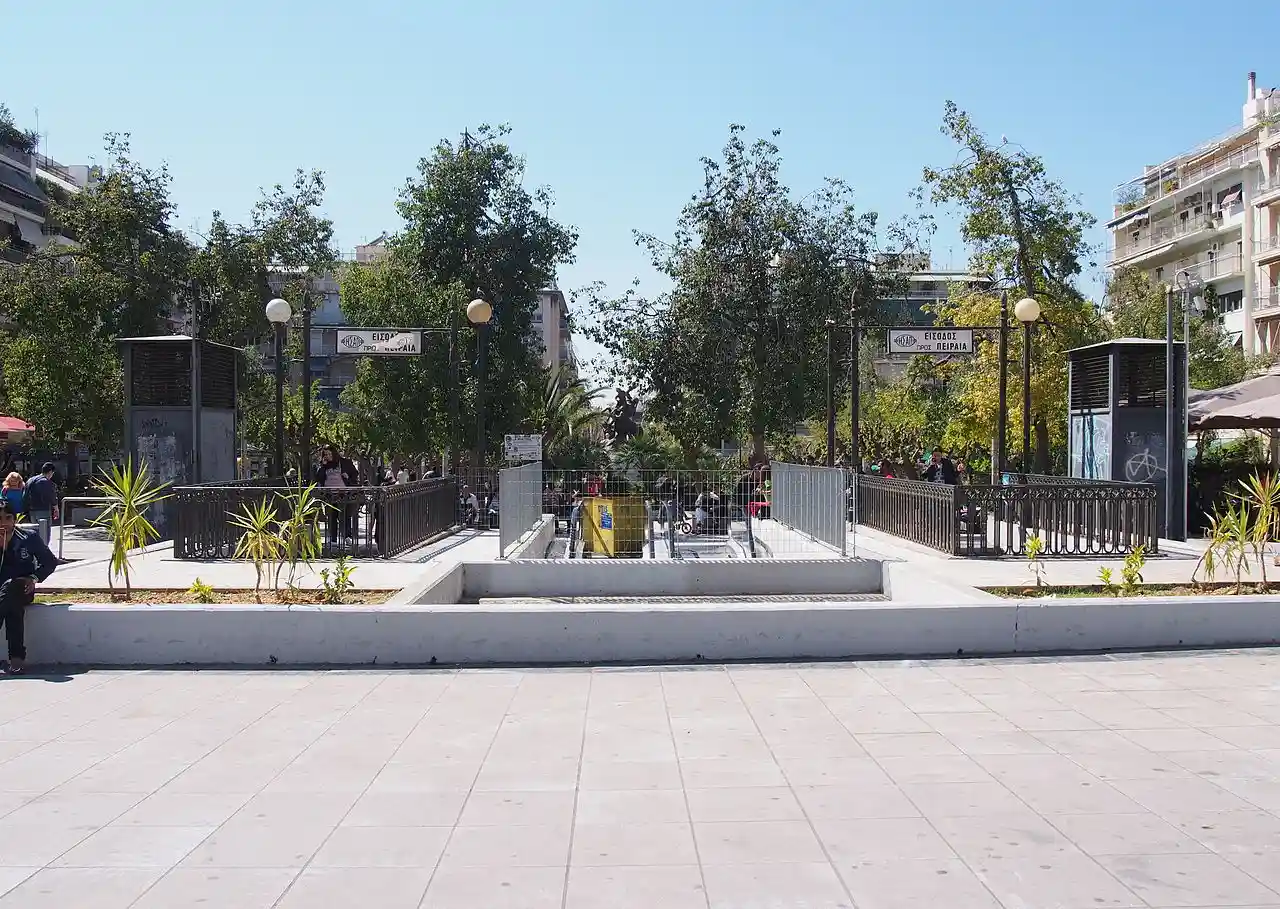 Viktoria Square (originally Kyriakou Square) is a large square in the Municipality of Athens, Greece between 3 September and Aristotelous streets. It was renamed Viktoria in honor of the Queen of the United Kingdom on the occasion of the annexation of the Ionian Islands to Greece in 1864, as a gift to the enthronement of the Queen's nephew, Prince Christian William Ferdinand Adolf George of Denmark, later George I of Greece. Underneath the square passes the Athens Electric Railway at the homonymous stop. The square crosses the streets of Hayden, 3 September and Aristotelous; in its center is the sculptural complex Theseus saves Hippodamia by Johannes Pfuhl (1846–1914). Read more on Wikipedia