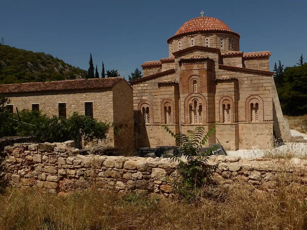 Daphni or Dafni (Modern Greek: Δαφνί; Katharevousa: Δαφνίον, Daphnion) is an eleventh-century Byzantine monastery northwest of central Athens in the suburb of Chaidari, south of Athinon Avenue (GR-8A). It is situated near the forest of the same name, on the Sacred Way that led to Eleusis. The forest covers about , and surrounds a laurel grove. "Daphni" is the modern Greek name that means "laurel grove", derived from Daphneion (Lauretum). Read more on Wikipedia