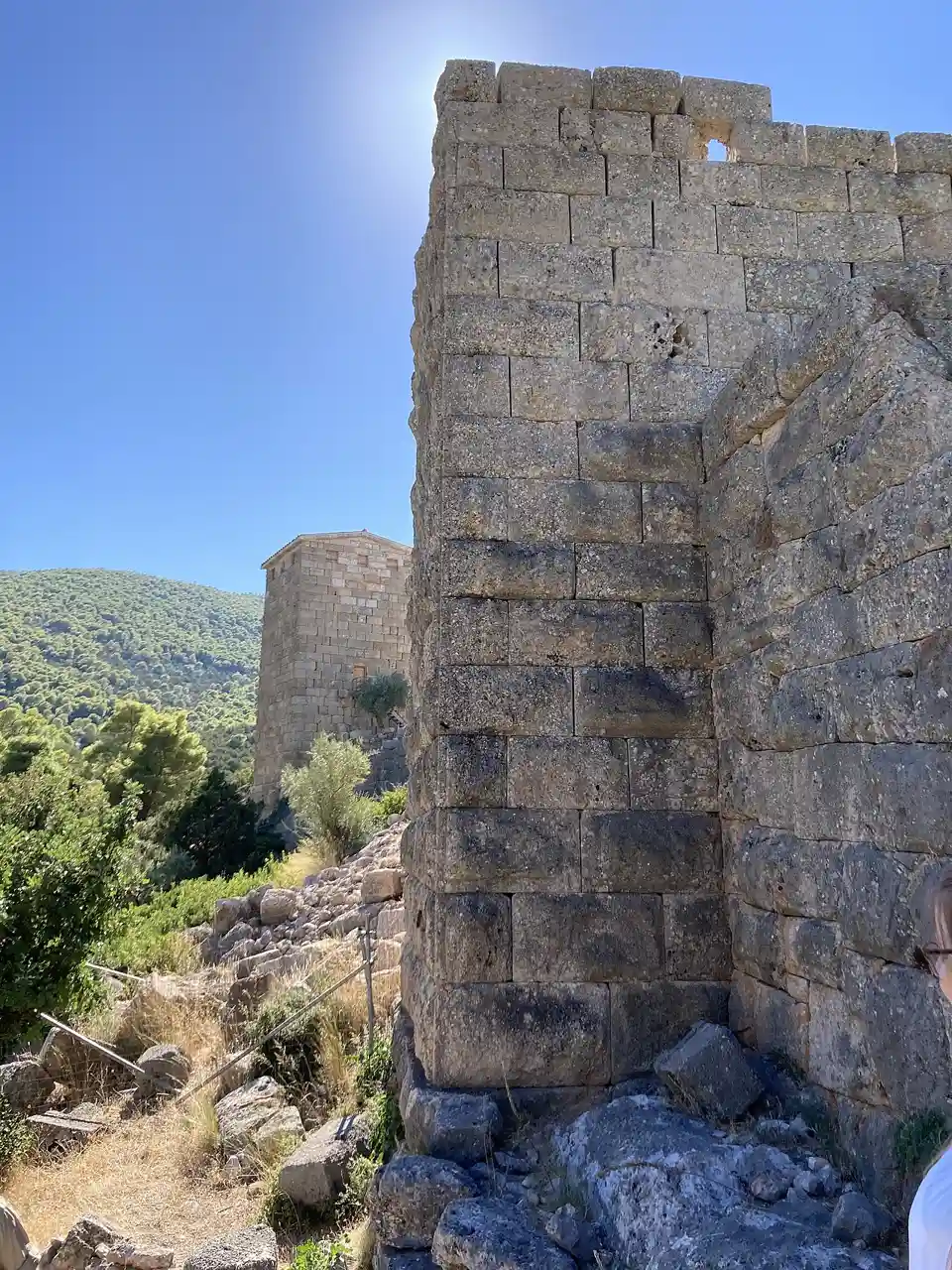 Aigosthena () was an ancient Greek fortified port city of Megaris, northwest of the ancient city of Megara to which it belonged. It is also the name of the coastal settlement at the foot of the ancient city walls, also known as Porto Germeno. The ancient citadel which stands at the foot of Mt Cithaeron and extends down to the sea at the inlet of Aigosthena, on the east side of the Gulf of Corinth, is famous for retaining several of the tallest surviving towers of ancient Greece. Read more on Wikipedia